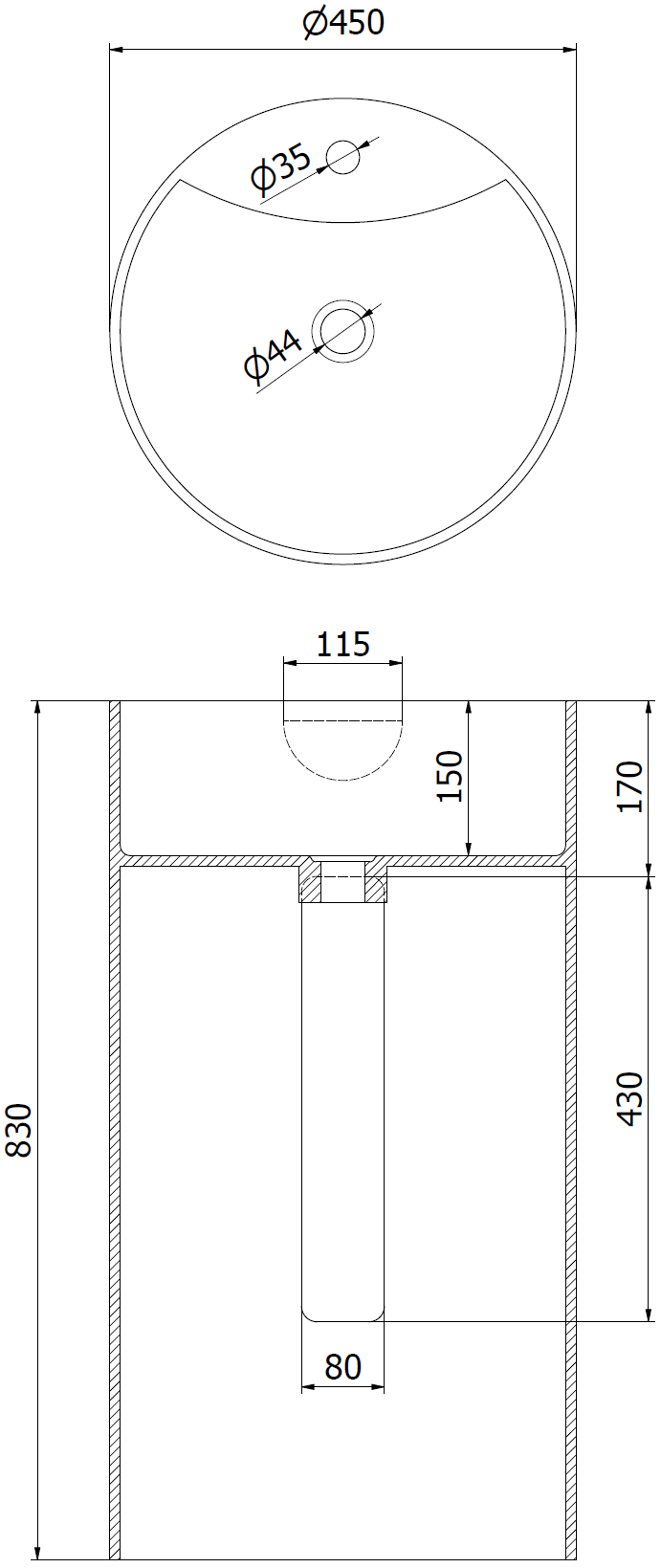 Die Spüle hat ein Loch, in dem wir die Batterie montieren können. Dies spart einen wertvollen Raum im Badezimmer und betont seine Ästhetik. Mit dieser Lösung können Sie auch einfach um die Spüle sauber bleiben.