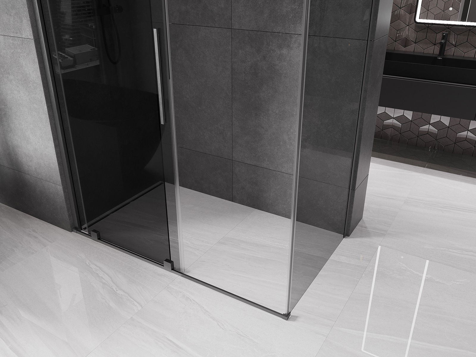 Dank der Verwendung eines universellen Montagesystems können die Duschtüren je nach Ihren Bedürfnissen rechts oder links montiert werden. Dank dessen können Sie problemlos eine Dusche entwerfen, die auf den Raum des Badezimmers zugeschnitten ist.