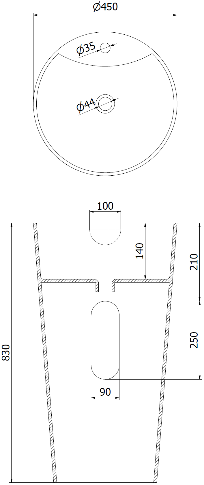 Die Spüle hat ein Loch, in dem wir die Batterie montieren können. Dies spart einen wertvollen Raum im Badezimmer und betont seine Ästhetik. Mit dieser Lösung können Sie auch einfach um die Spüle sauber bleiben.
