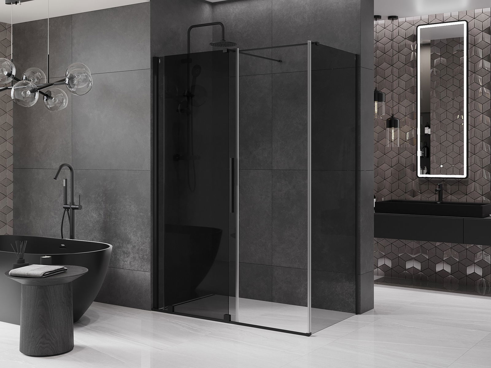 Der praktische und bequeme Griff ist aus rostfreiem Stahl gefertigt. Die modische Form, kombiniert mit einer auf die Farbe der Profile abgestimmten Oberfläche, verleiht dem Ganzen ein modernes und stilvolles Aussehen, das die Ästhetik eines jeden Badezimmers aufwertet.