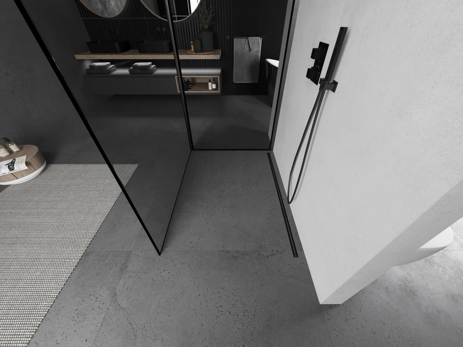 Das Produkt kann je nach Bedarf sowohl auf einer Duschwanne als auch direkt auf dem Boden montiert werden. Die universelle Montagemethode ermöglicht die Anpassung des Produkts an verschiedene Arten von Badezimmern und Raumkonfigurationen.