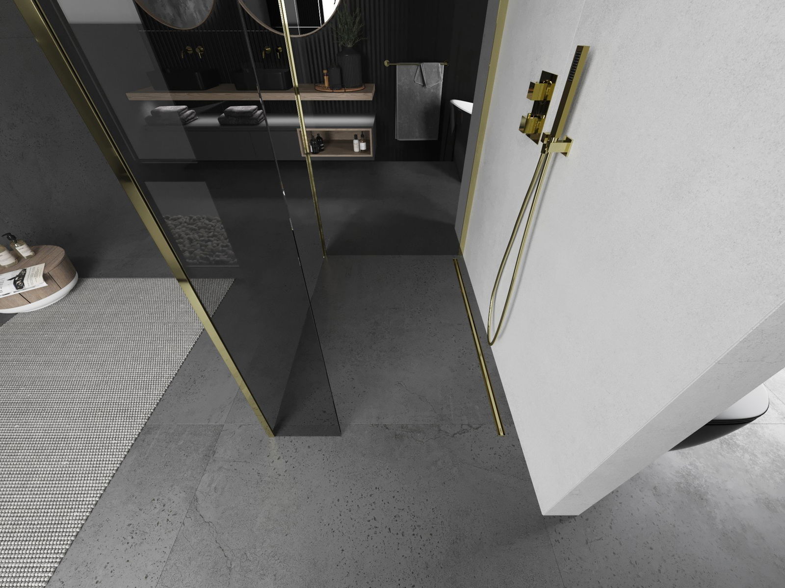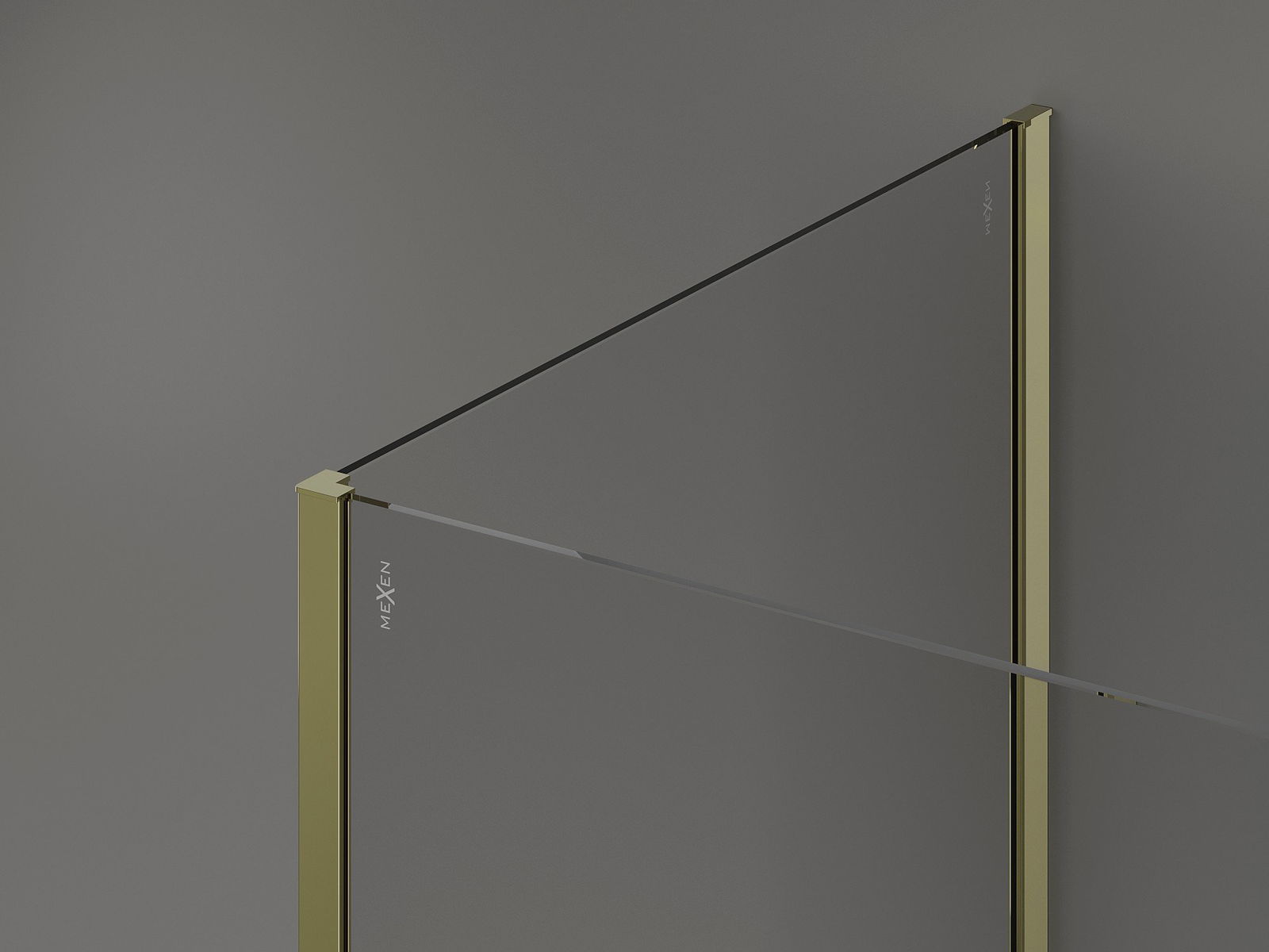 Mexen Kioto Duschwand Walk-in 135 x 70 x 30 cm, transparent, gold - 800-135-070-221-50-00-030