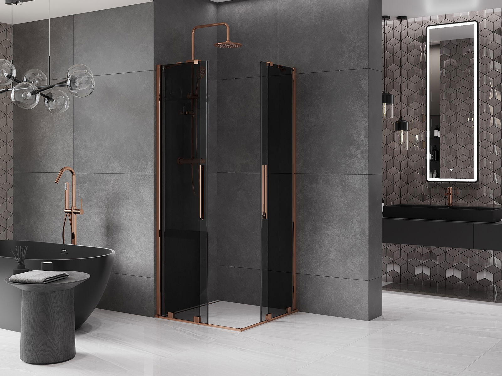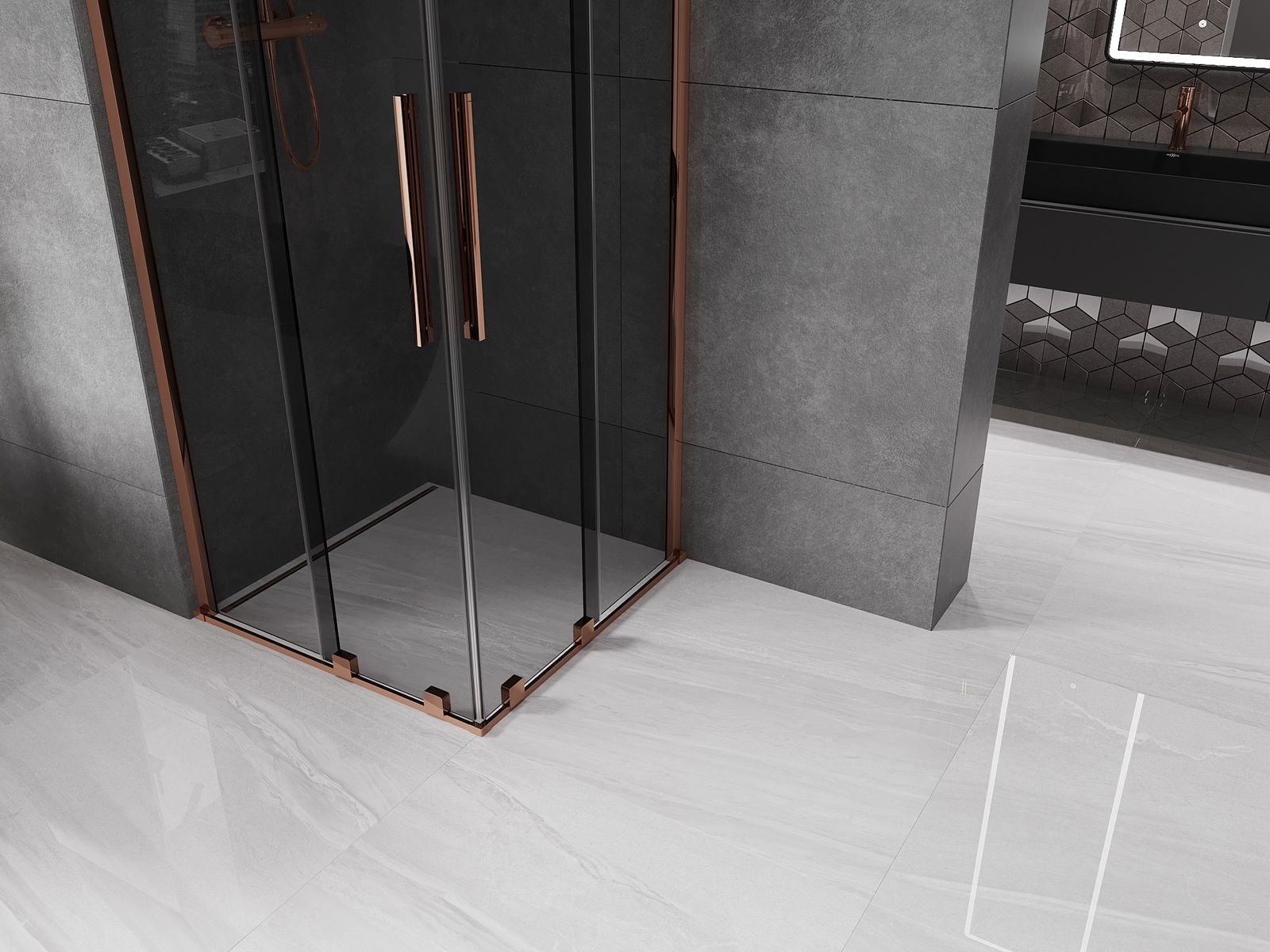 Mexen Velar Duo Duschkabine, verschiebbar, 80 x 80 cm, Graphit, Roségold - 871-080-080-42-60