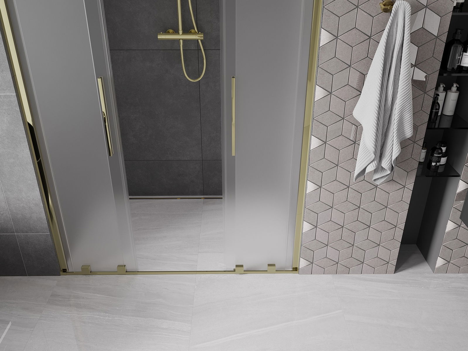 Mexen Velar Duo Schiebetüren für die Dusche 140 cm, mattiert, gold - 871-140-000-32-50