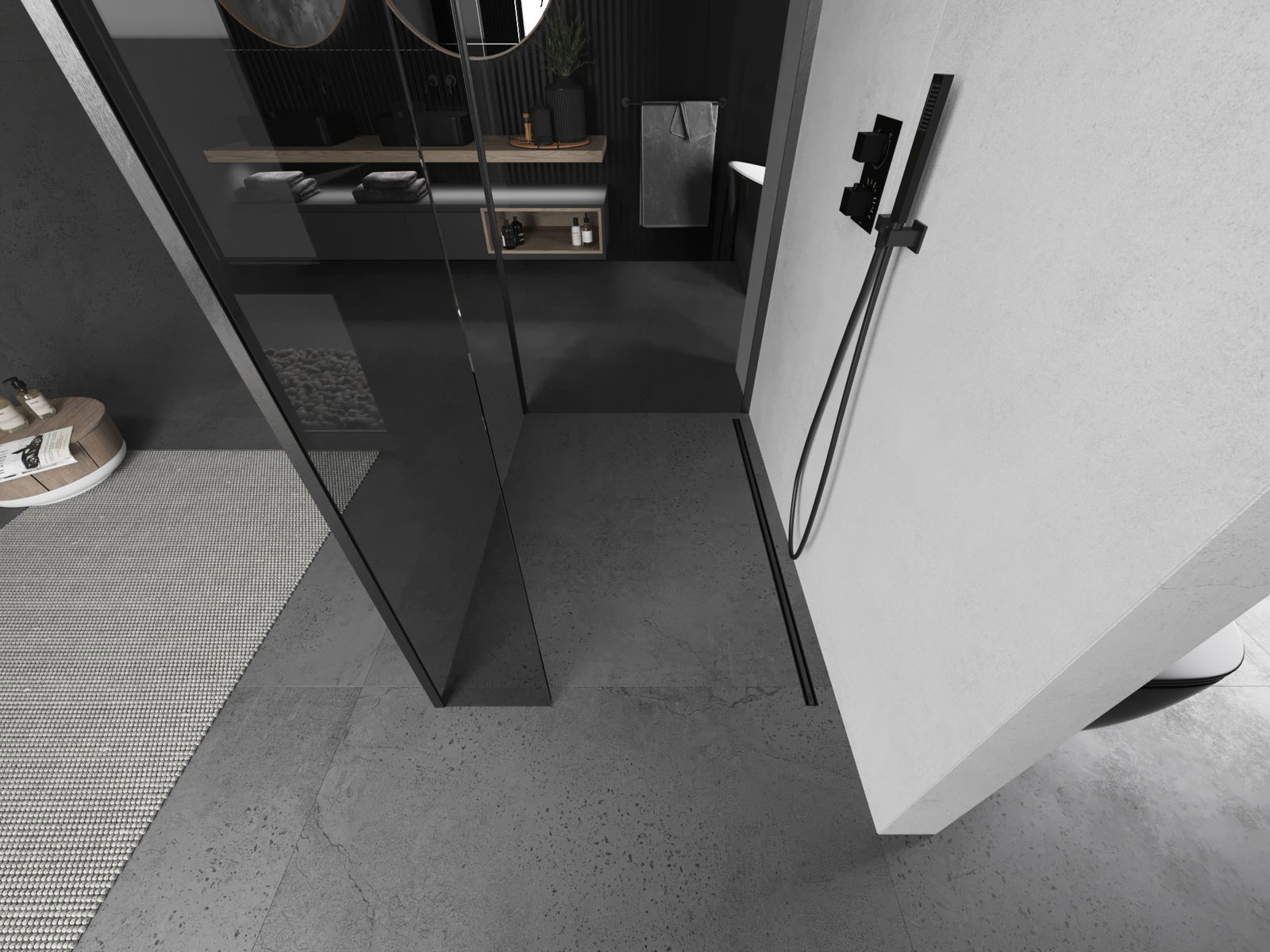 Das Produkt kann je nach Bedarf sowohl auf einer Duschwanne als auch direkt auf dem Boden montiert werden. Die universelle Montagemethode ermöglicht die Anpassung des Produkts an verschiedene Arten von Badezimmern und Raumkonfigurationen.