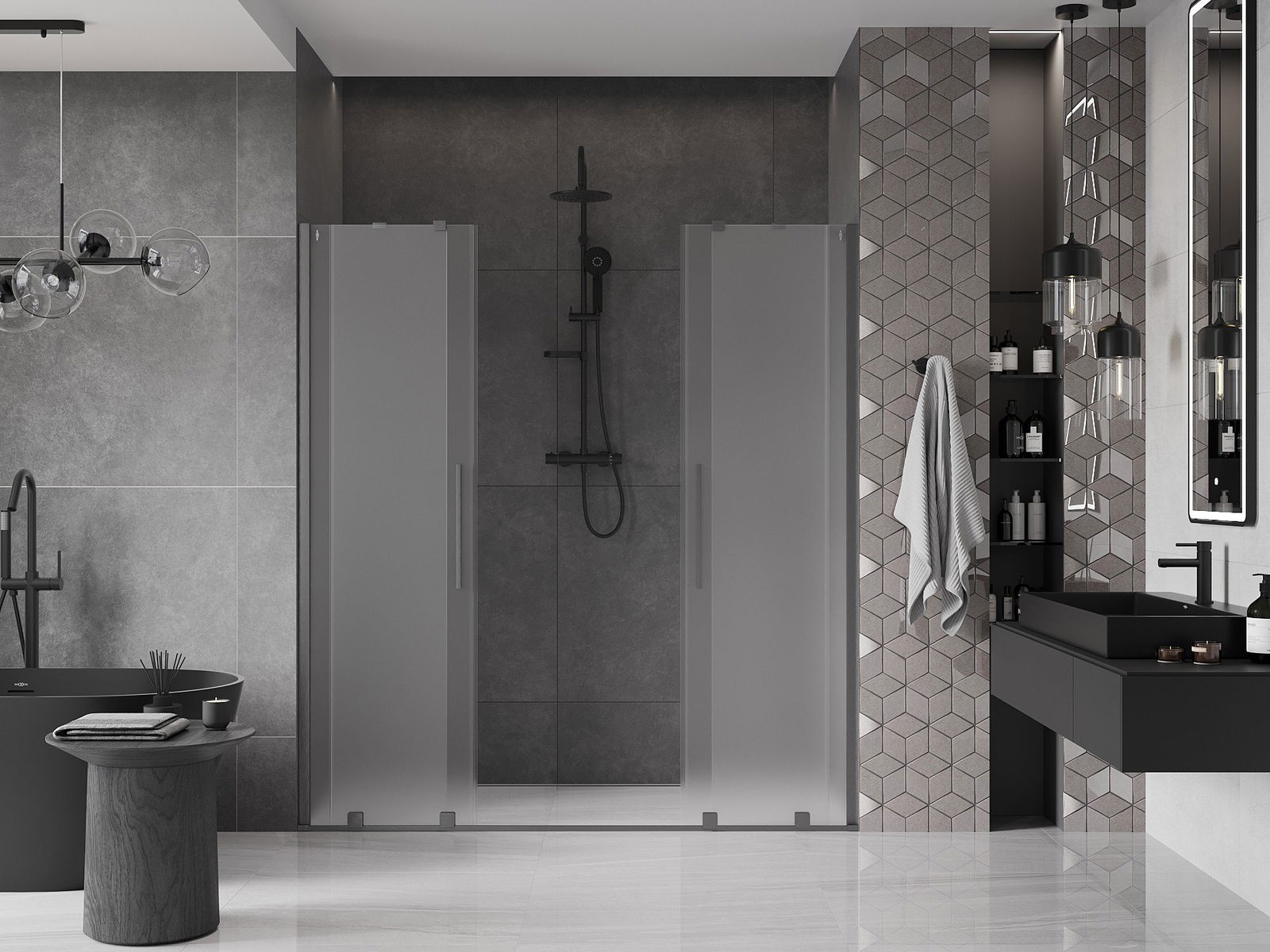 Mexen Velar Duo Schiebetür für Dusche 170 cm, matt, gebürstet Gun Gray - 871-170-000-32-66