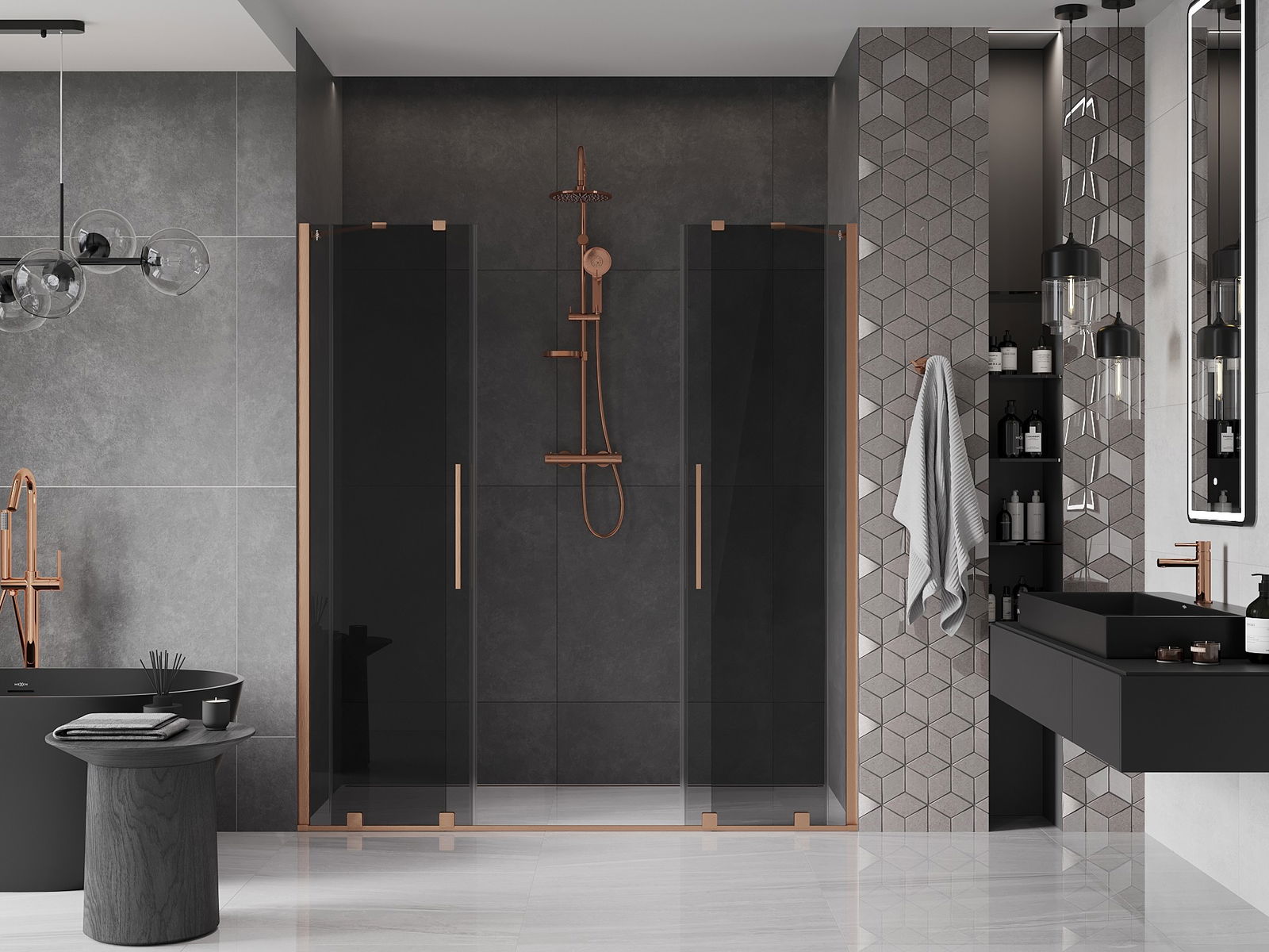 Mexen Velar Duo Schiebeduschtür 180 cm, Graphit, gebürstetes Kupfer - 871-180-000-42-65