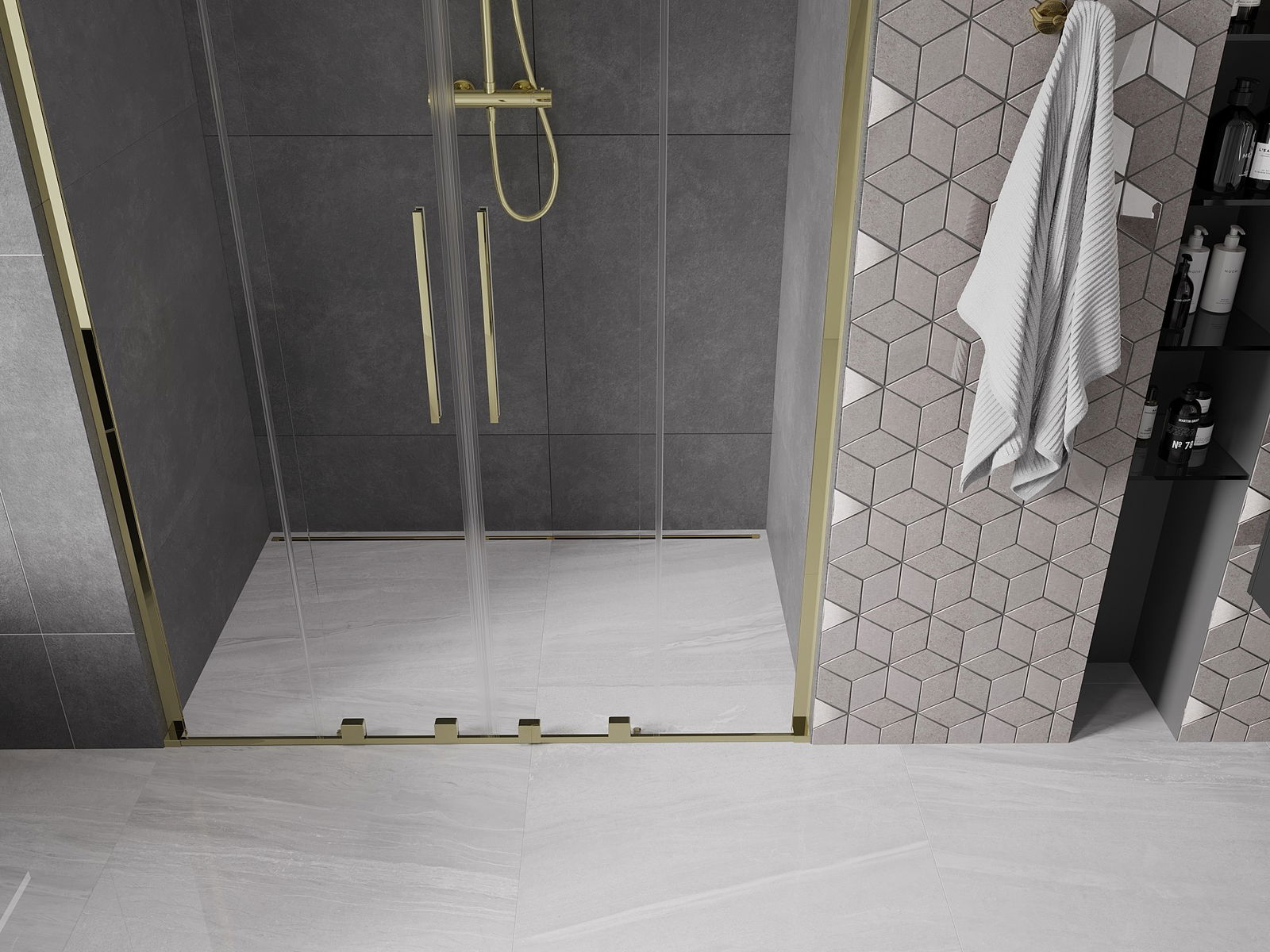 Abhängig von Ihren Bedürfnissen kann das Produkt sowohl auf der Duschschale als auch direkt auf dem Boden montiert werden. Mit der universellen Montagemethode können Sie das Produkt an verschiedene Arten von Badezimmern anpassen und Raum konfigurieren.