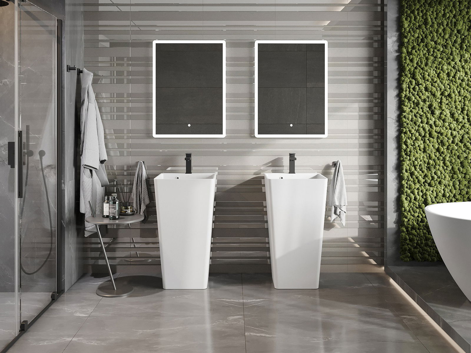 Die matte Oberfläche der Keramik betont perfekt die Art der Produktfarbe und verleiht ihr ein einzigartiges und ausdrucksstarkes Finish. Die subtile Struktur der matten Keramik führt die Eleganz ins Badezimmer ein und schafft einen ästhetischen Raum.