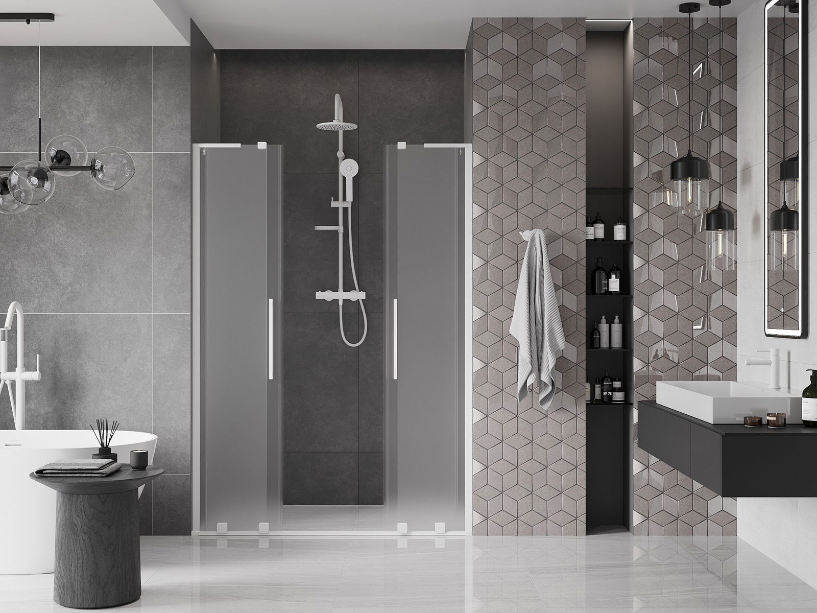 Dank der Verwendung eines universellen Montagesystems können die Duschtüren je nach Ihren Bedürfnissen rechts oder links montiert werden. Dank dessen können Sie problemlos eine Dusche entwerfen, die auf den Raum des Badezimmers zugeschnitten ist.
