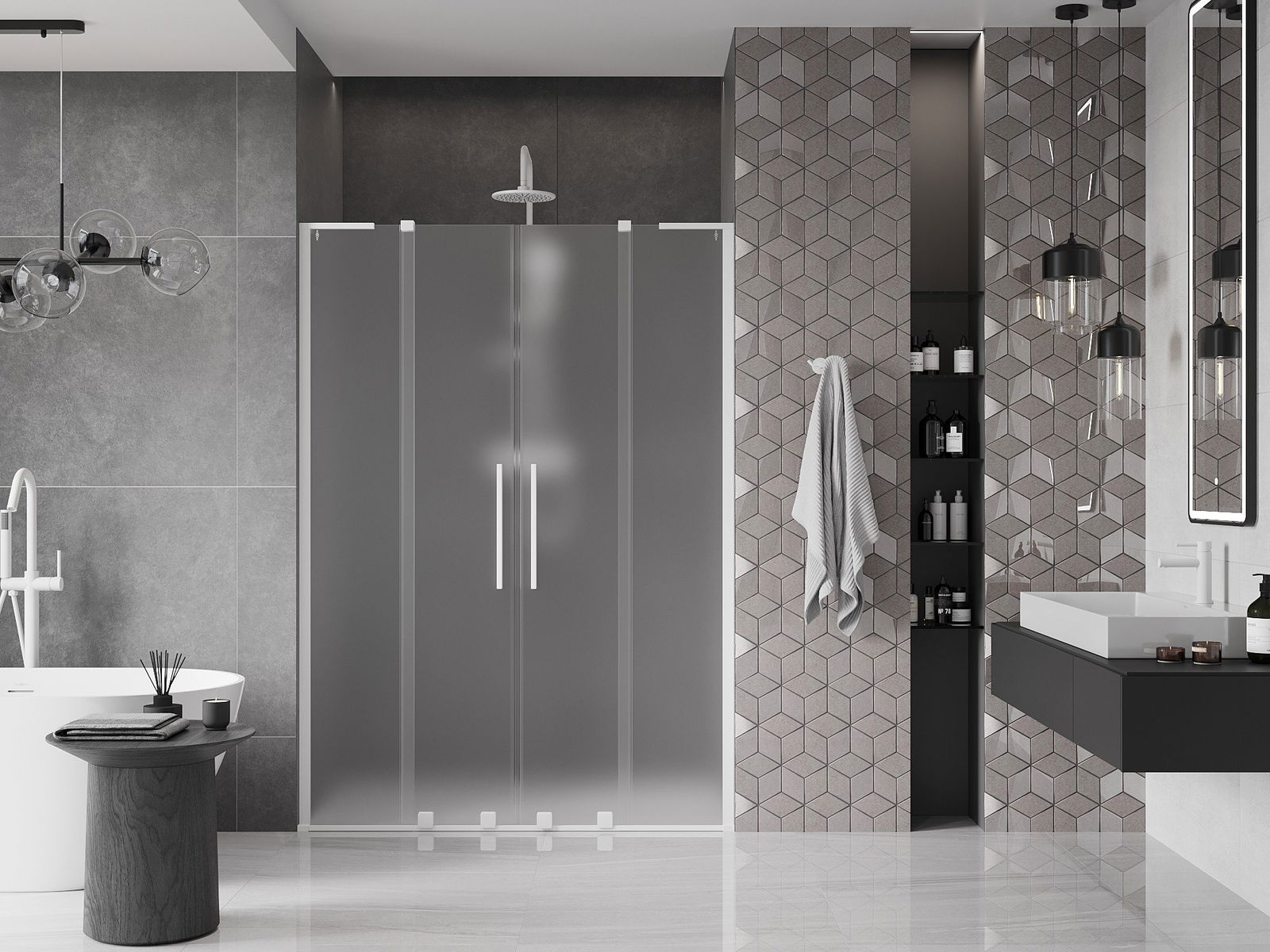 Mexen Velar L Duo Schiebeduschtür 150 cm, satiniert, weiß - 871-150-003-32-20