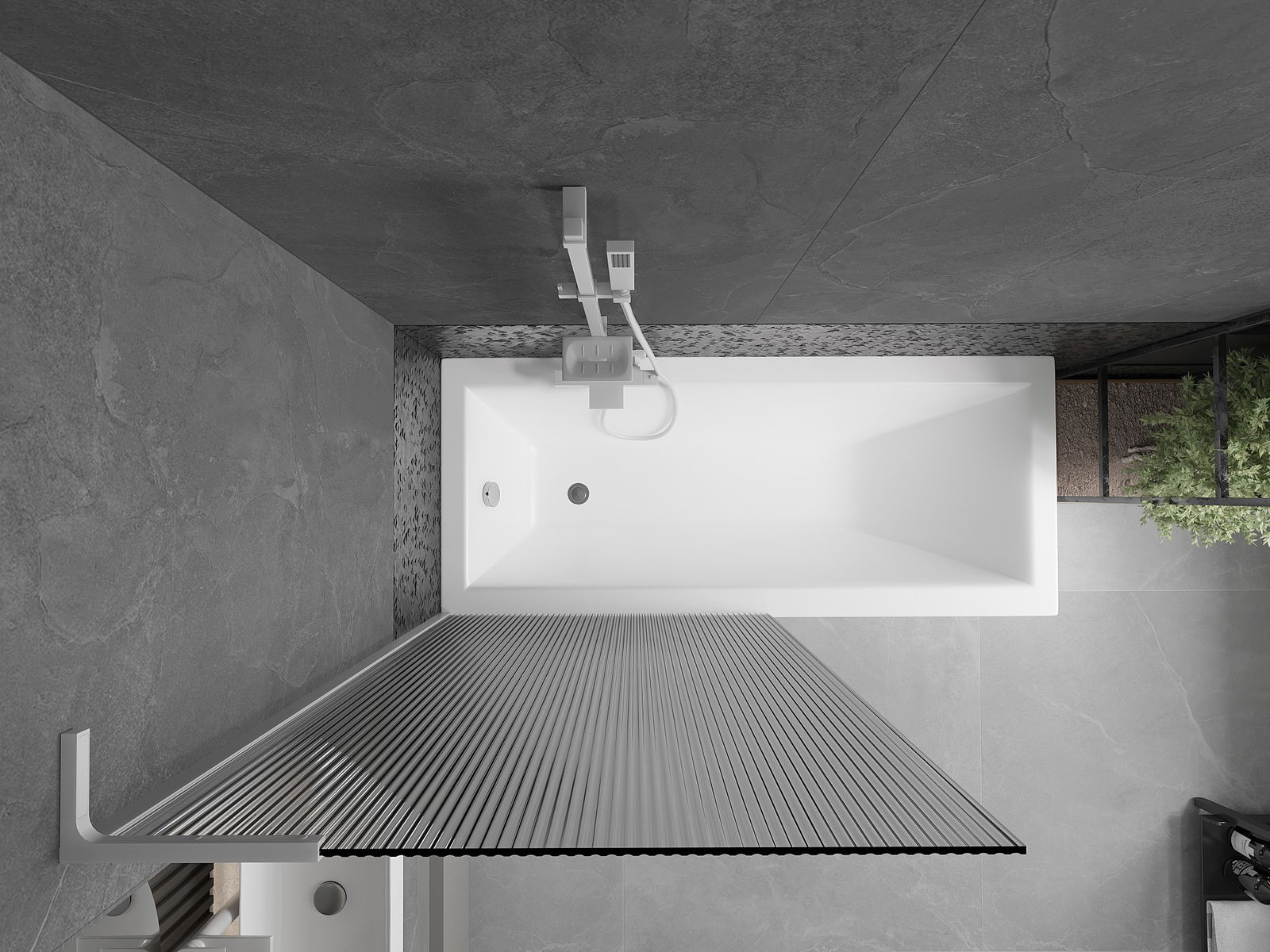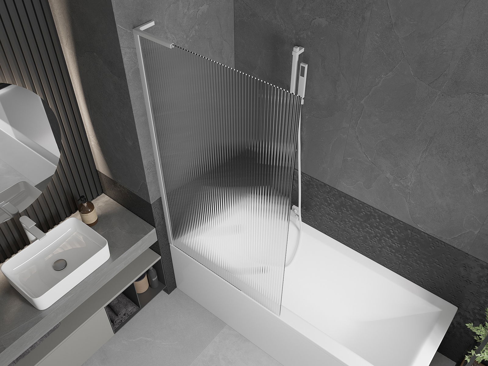 Effektiver Schutz gegen Wasser beim Baden. Der Bildschirm hat Dichtungen, die sich perfekt an das Glas des Glass und an der Badewanne der Badewanne anpassen. Eine funktionale Lösung, um Sicherheit und einfache Wartung zu gewährleisten.