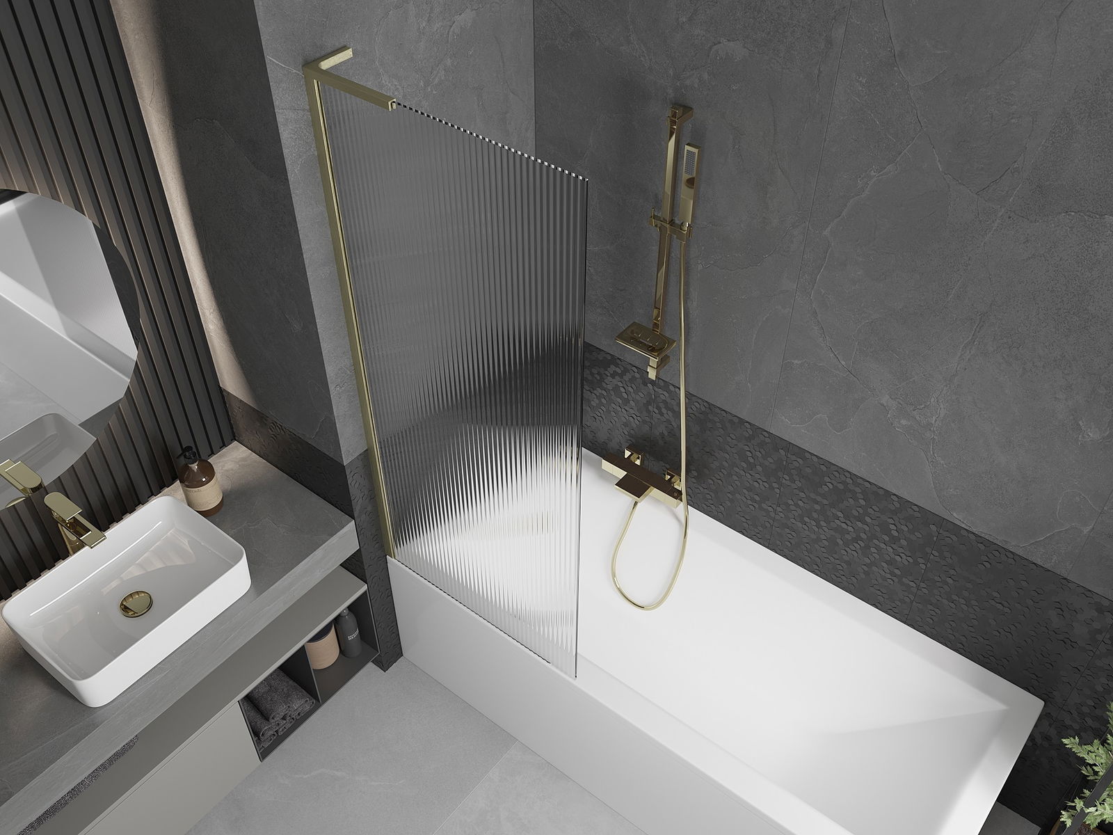 Mexen Next L Badewannenwand 1-flügelig 70 x 150 cm, Streifen, gold gebürstet - 895-070-000-03-09-55