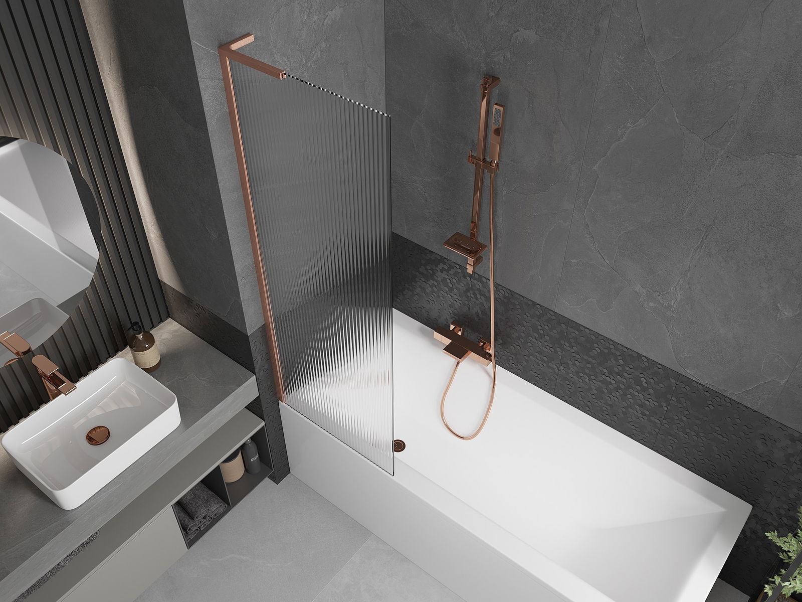 Mexen Next L Badewannenaufsatz 1-flügelig 60 x 150 cm, Streifen, gebürstetes Kupfer - 895-060-000-03-09-65