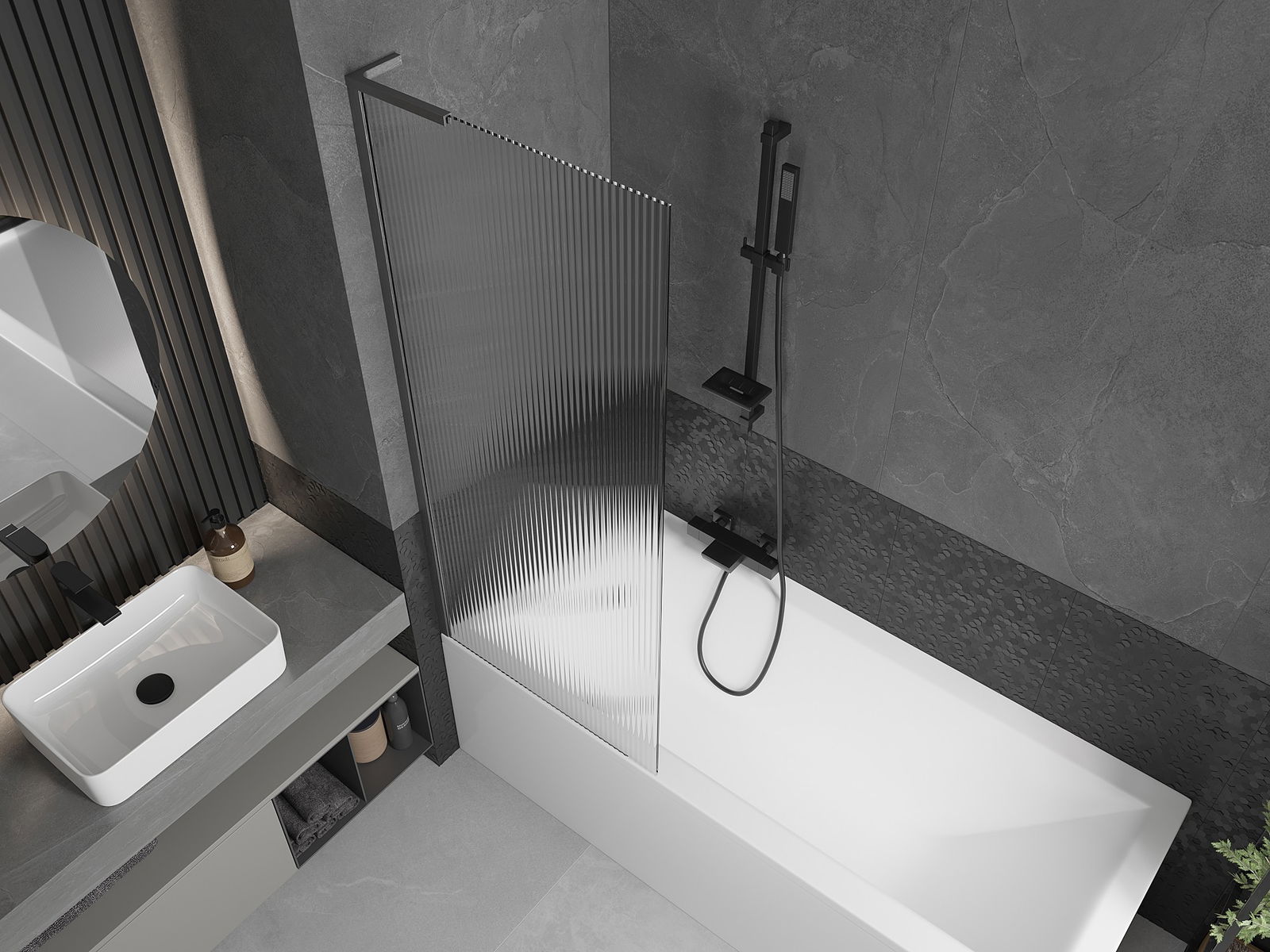 Effektiver Schutz vor dem Überlaufen von Wasser während des Badens. Die Duschwand verfügt über Dichtungen, die sich perfekt an die Glasscheibe und den Rand der Badewanne anpassen. Eine funktionale Lösung, die Sicherheit und einfache Reinigung gewährleistet.
