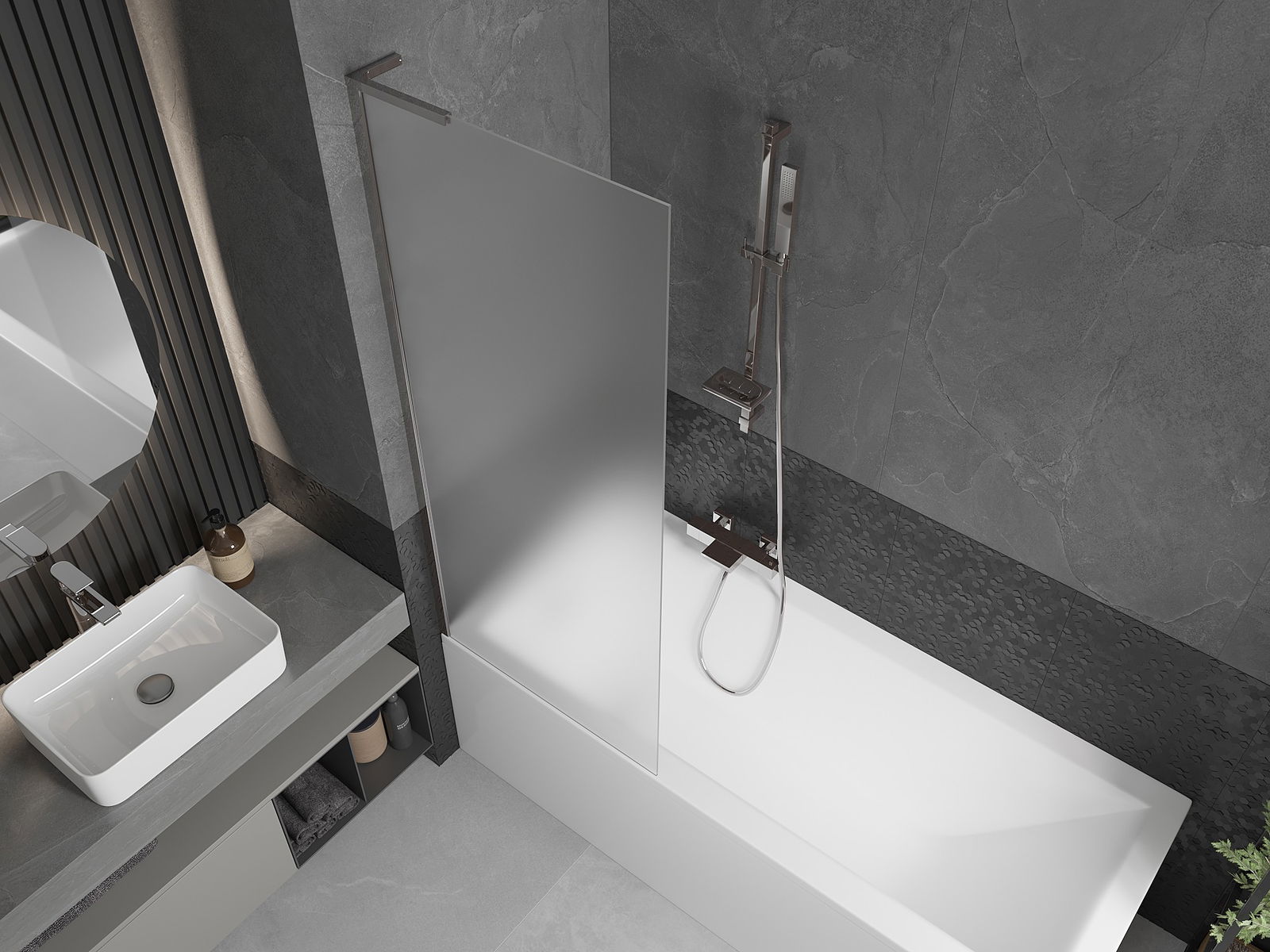 Effektiver Schutz vor dem Überlaufen von Wasser während des Badens. Die Duschwand verfügt über Dichtungen, die sich perfekt an die Glasscheibe und den Rand der Badewanne anpassen. Eine funktionale Lösung, die Sicherheit und einfache Reinigung gewährleistet.