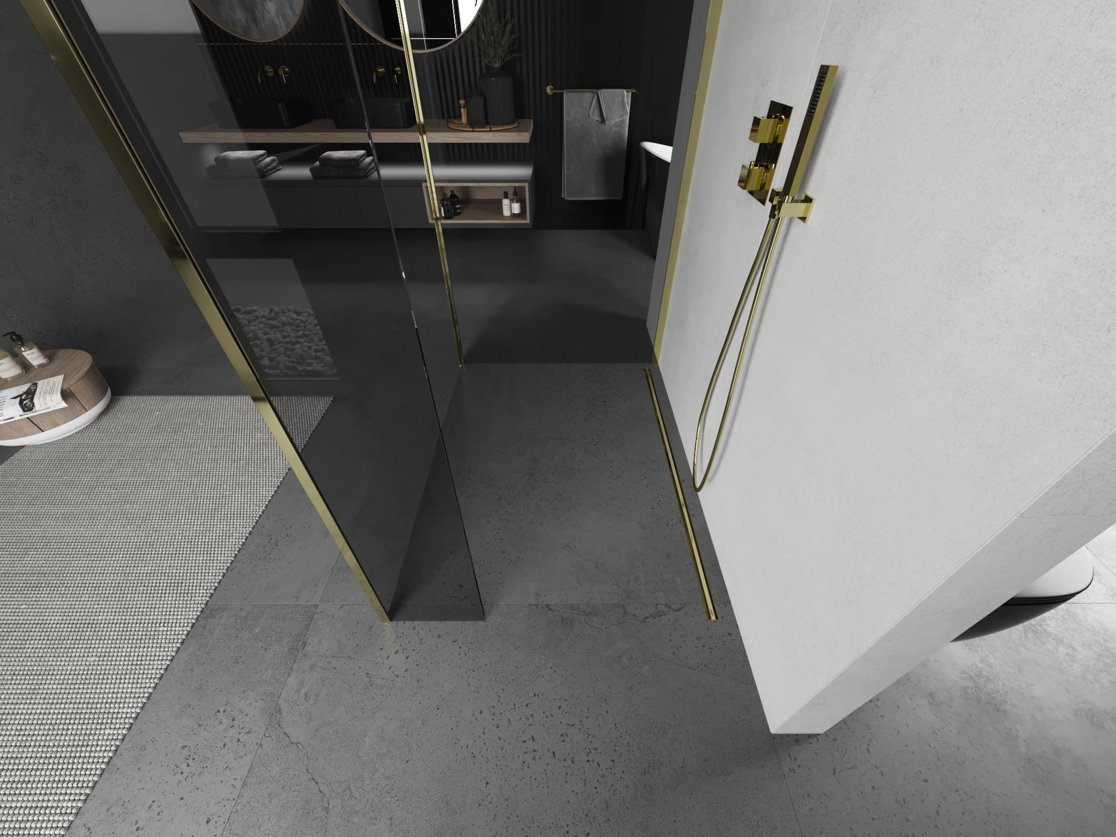 Das Produkt kann je nach Bedarf sowohl auf einer Duschwanne als auch direkt auf dem Boden montiert werden. Die universelle Montagemethode ermöglicht die Anpassung des Produkts an verschiedene Arten von Badezimmern und Raumkonfigurationen.
