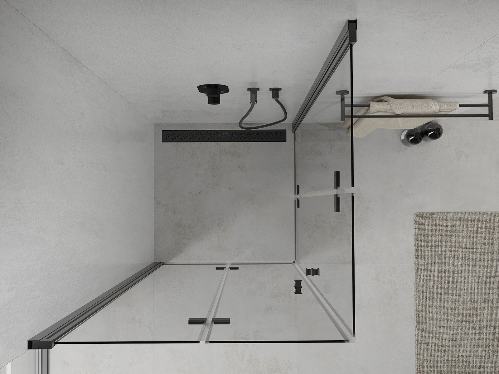 Abhängig von Ihren Bedürfnissen kann das Produkt sowohl auf der Duschschale als auch direkt auf dem Boden montiert werden. Mit der universellen Montagemethode können Sie das Produkt an verschiedene Arten von Badezimmern anpassen und Raum konfigurieren.