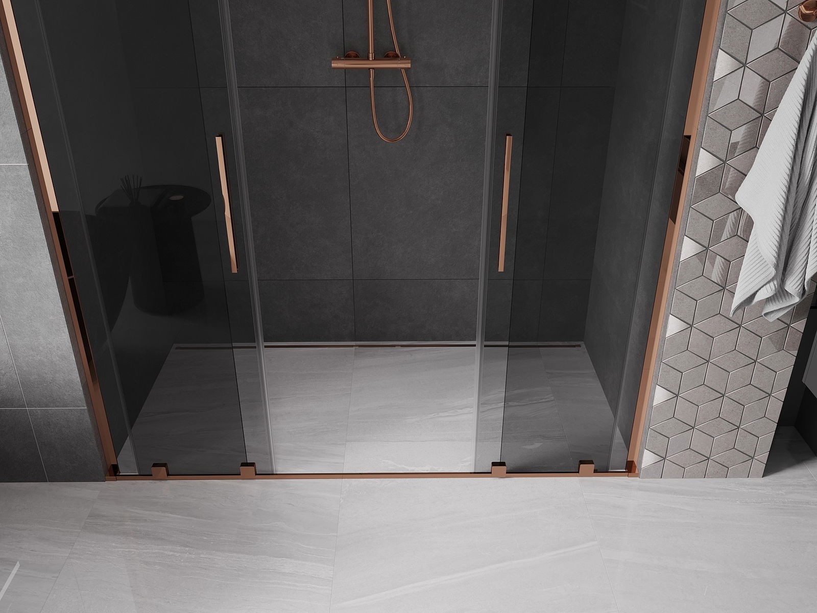 Mexen Velar L Duo Schiebetür Duschwand 180 cm, Graphit, Roségold - 871-180-003-42-60