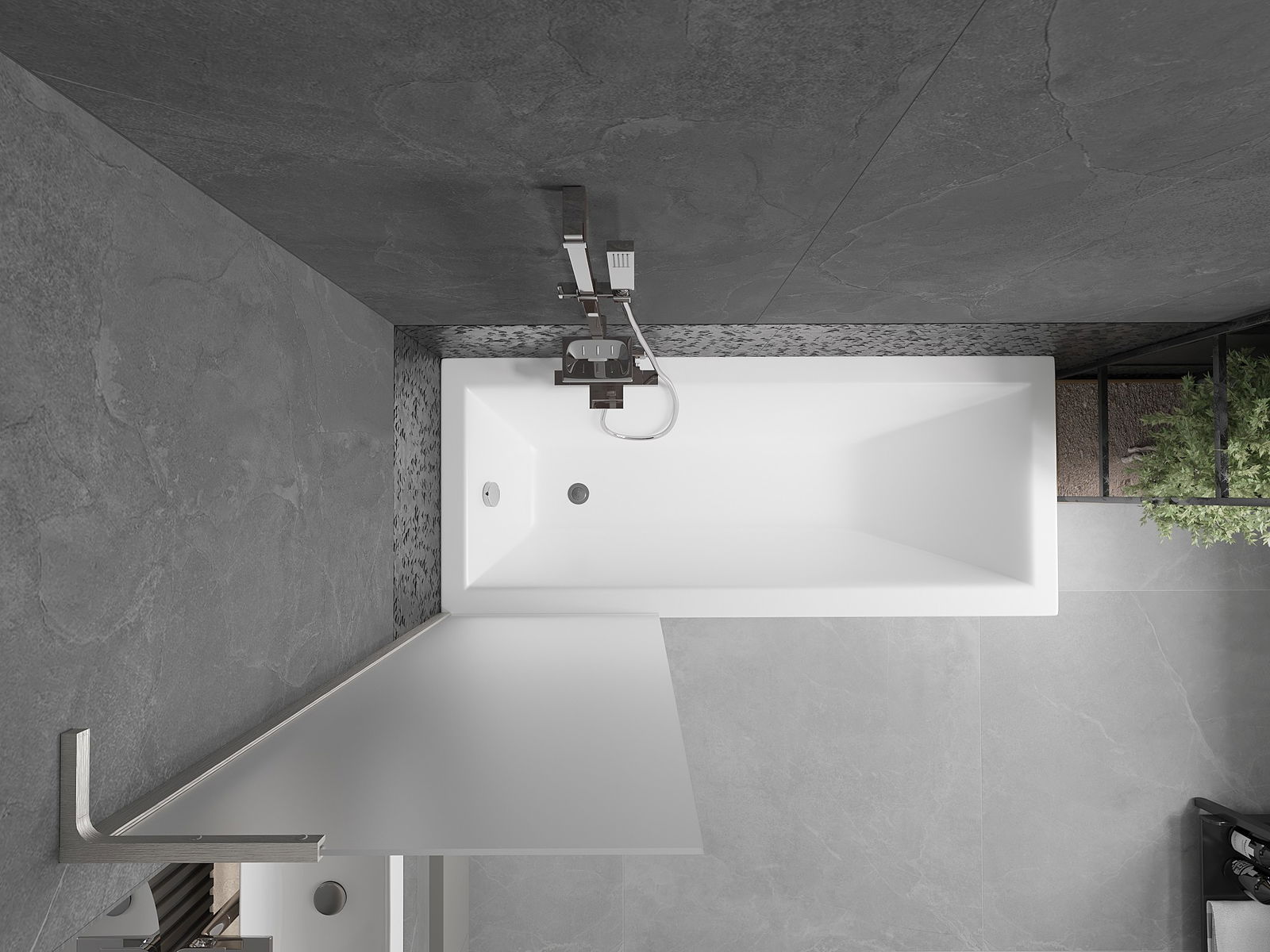 Effektiver Schutz gegen Wasser beim Baden. Der Bildschirm hat Dichtungen, die sich perfekt an das Glas des Glass und an der Badewanne der Badewanne anpassen. Eine funktionale Lösung, um Sicherheit und einfache Wartung zu gewährleisten.