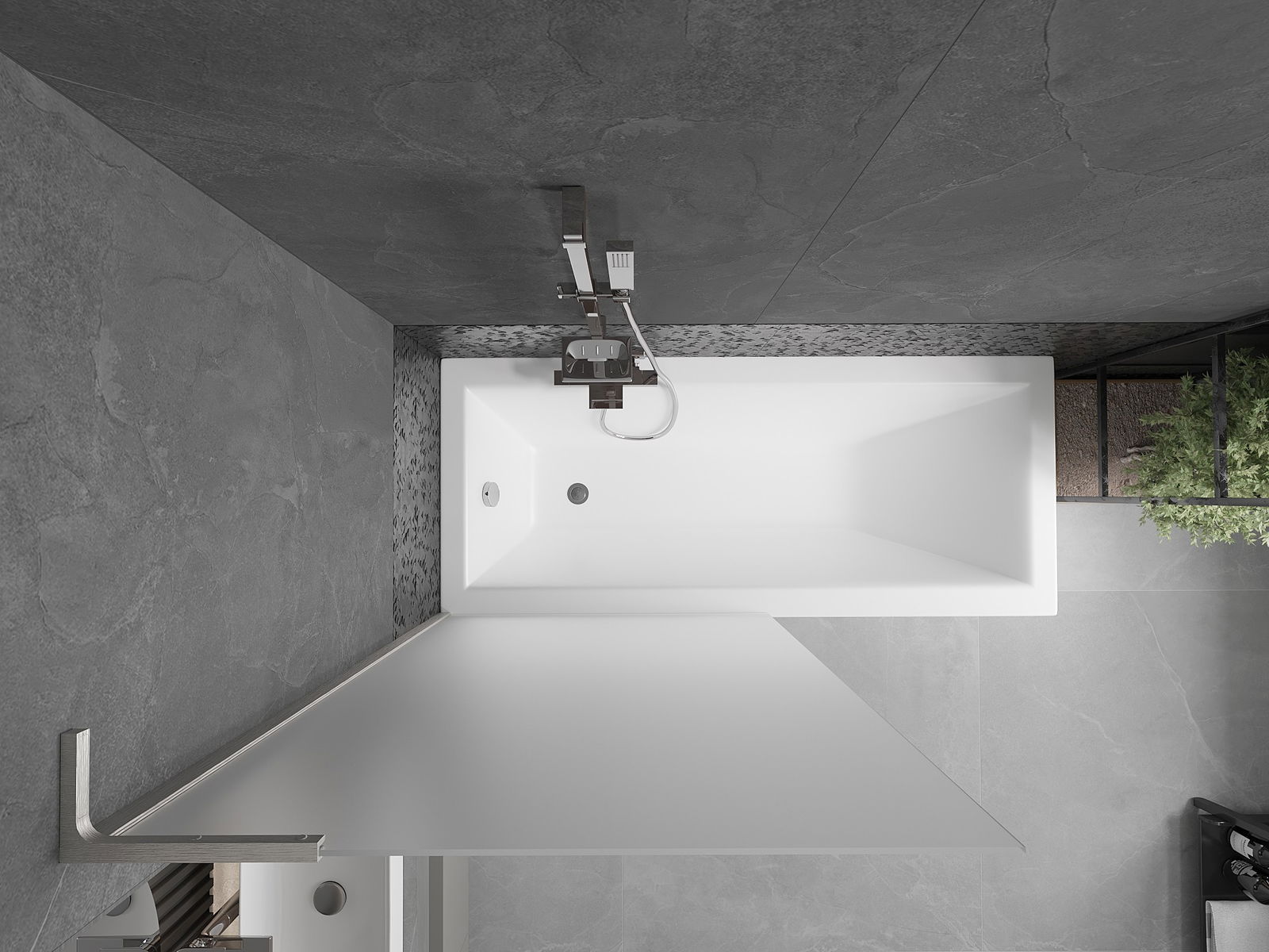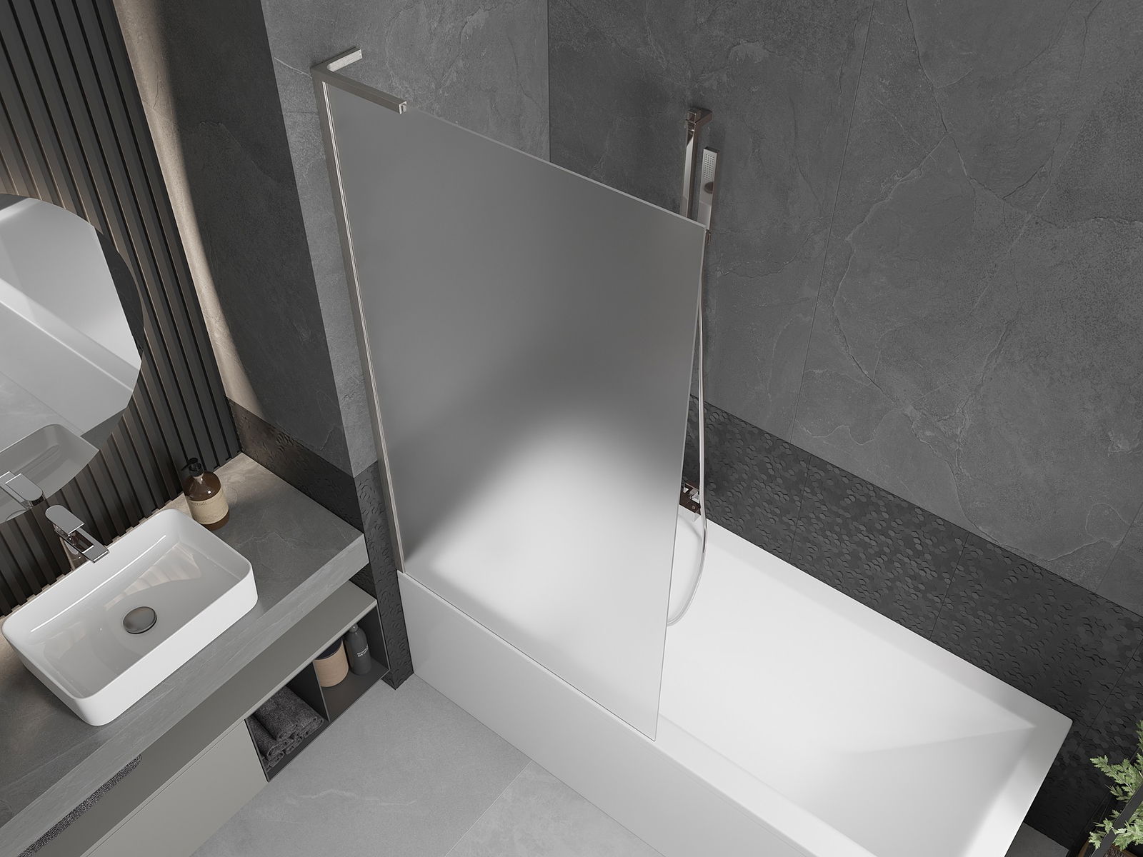 Effektiver Schutz gegen Wasser beim Baden. Der Bildschirm hat Dichtungen, die sich perfekt an das Glas des Glass und an der Badewanne der Badewanne anpassen. Eine funktionale Lösung, um Sicherheit und einfache Wartung zu gewährleisten.