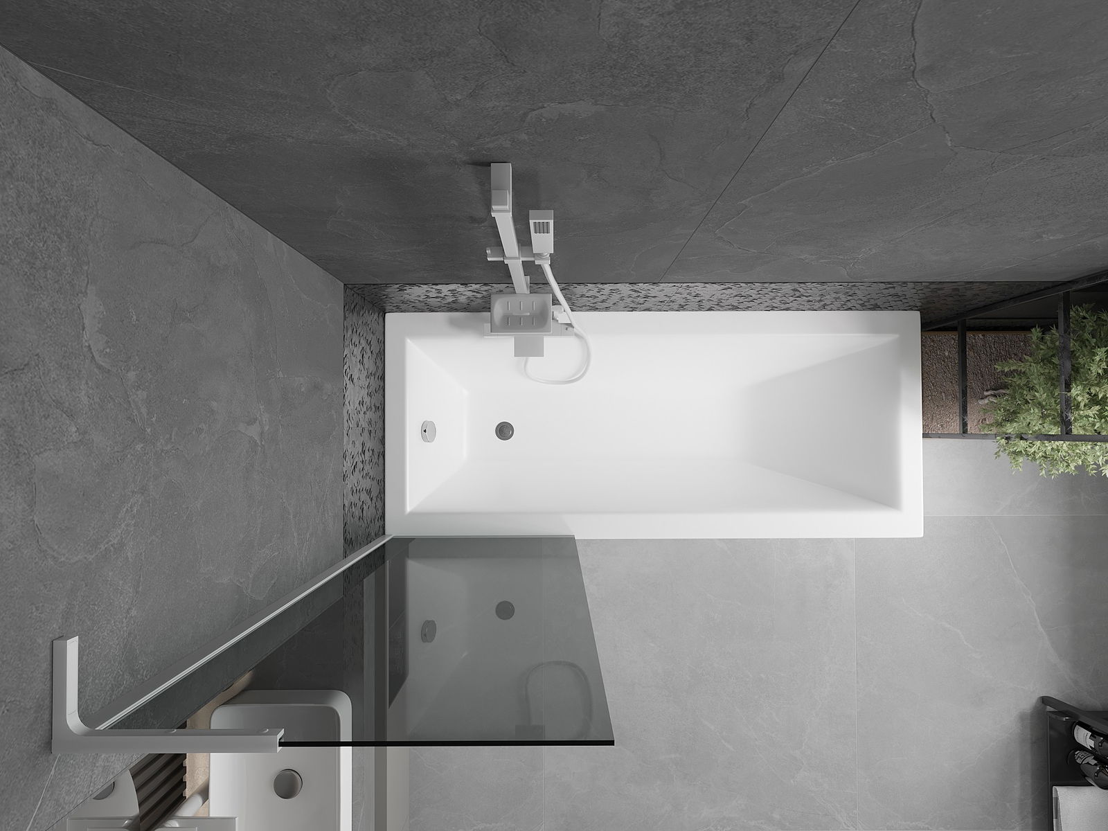 Effektiver Schutz vor dem Überlaufen von Wasser während des Badens. Die Duschwand verfügt über Dichtungen, die sich perfekt an die Glasscheibe und den Rand der Badewanne anpassen. Eine funktionale Lösung, die Sicherheit und einfache Reinigung gewährleistet.