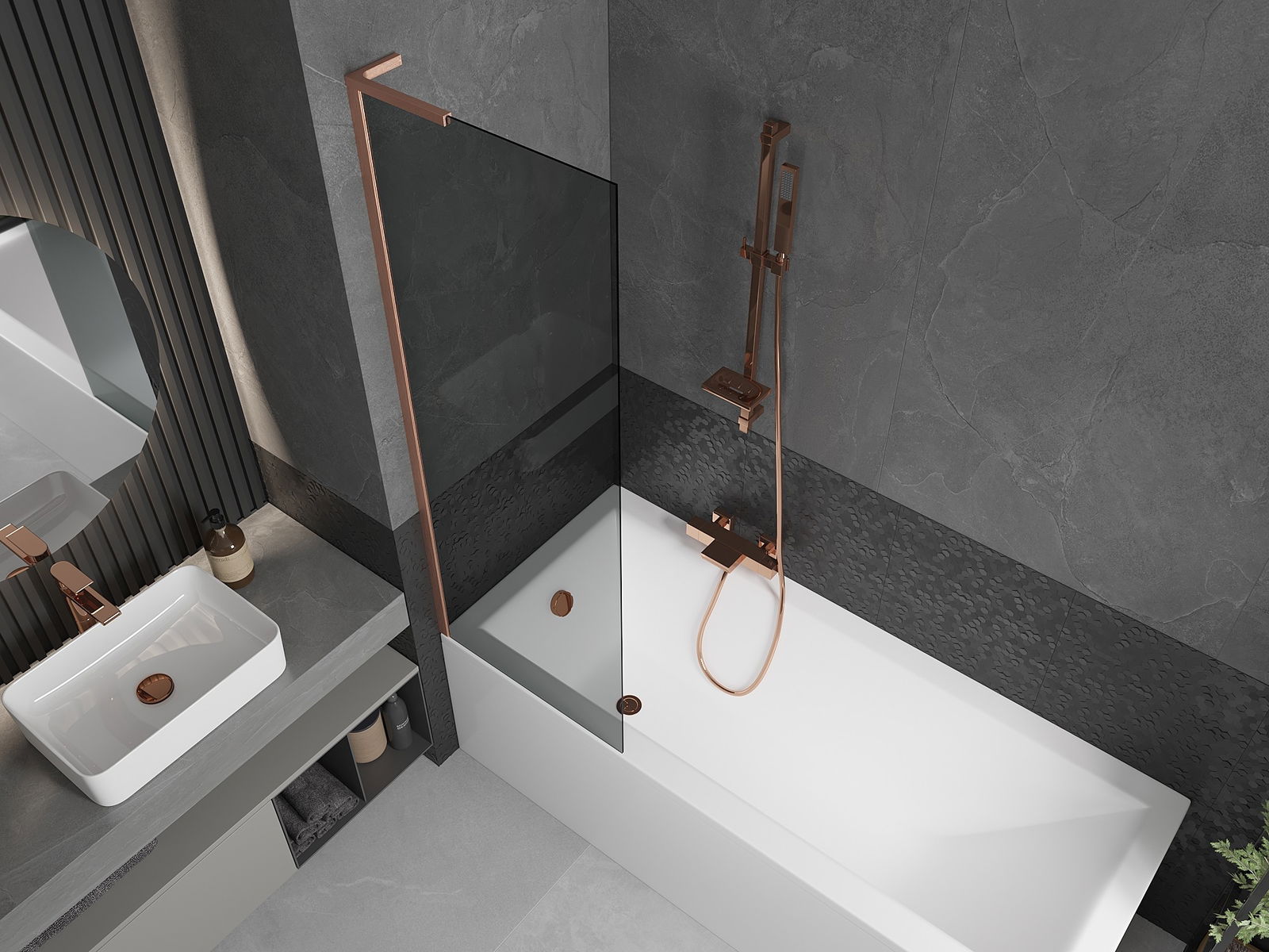 Mexen Next L Badewannen-Faltwand 1-flügelig 60 x 150 cm, Graphit, gebürstetes Kupfer - 895-060-000-03-40-65