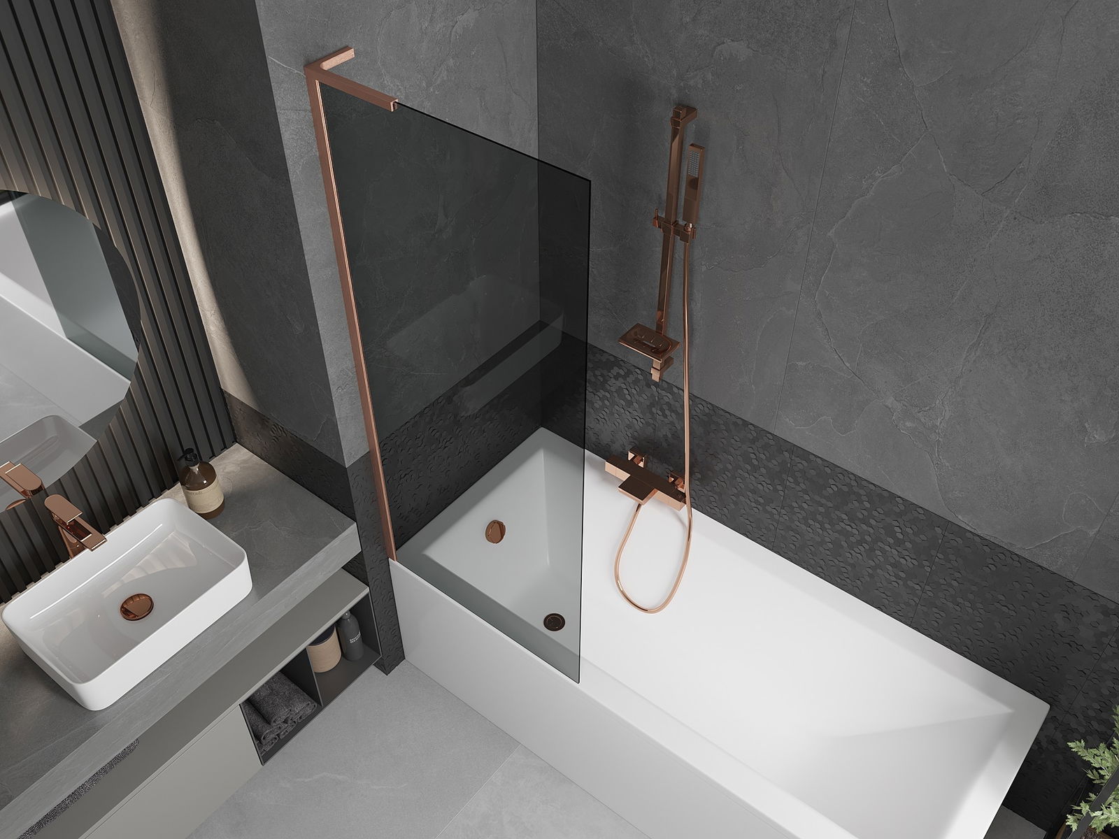 Mexen Next L Badewannenwand 1-flügelig 70 x 150 cm, Graphit, gebürstetes Kupfer - 895-070-000-03-40-65