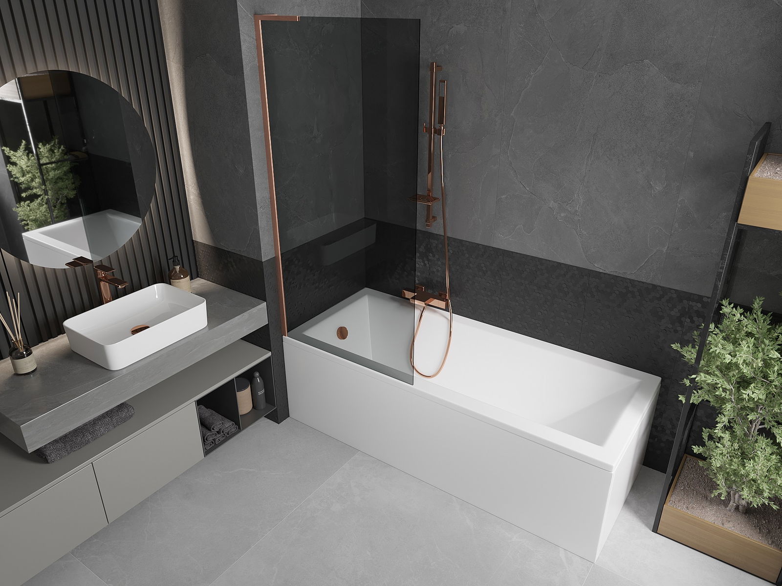 Mexen Next L Wannenschutz 1-teilig 80 x 150 cm, Graphit, gebürstetes Kupfer - 895-080-000-03-40-65