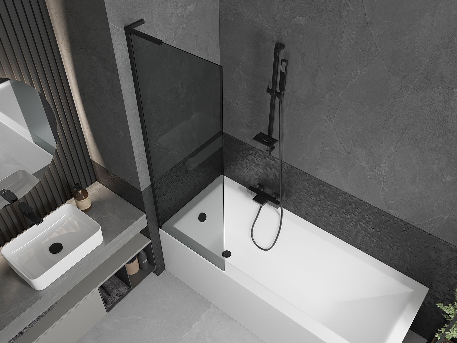 Effektiver Schutz gegen Wasser beim Baden. Der Bildschirm hat Dichtungen, die sich perfekt an das Glas des Glass und an der Badewanne der Badewanne anpassen. Eine funktionale Lösung, um Sicherheit und einfache Wartung zu gewährleisten.