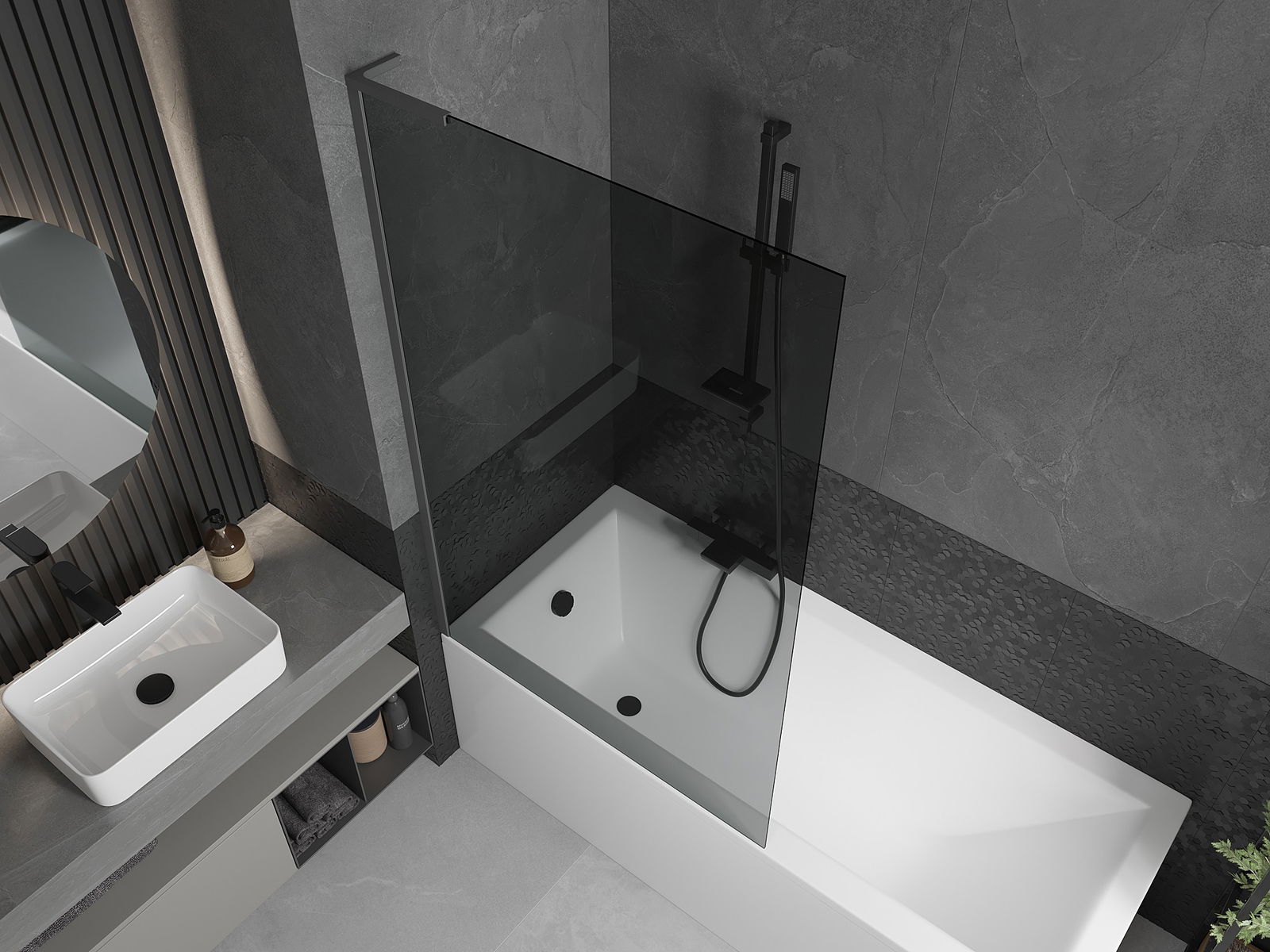 Mexen Next L Duschwand für Badewanne 1-flügelig 100 x 150 cm, grafit, Gun Metal - 895-100-000-03-40-95