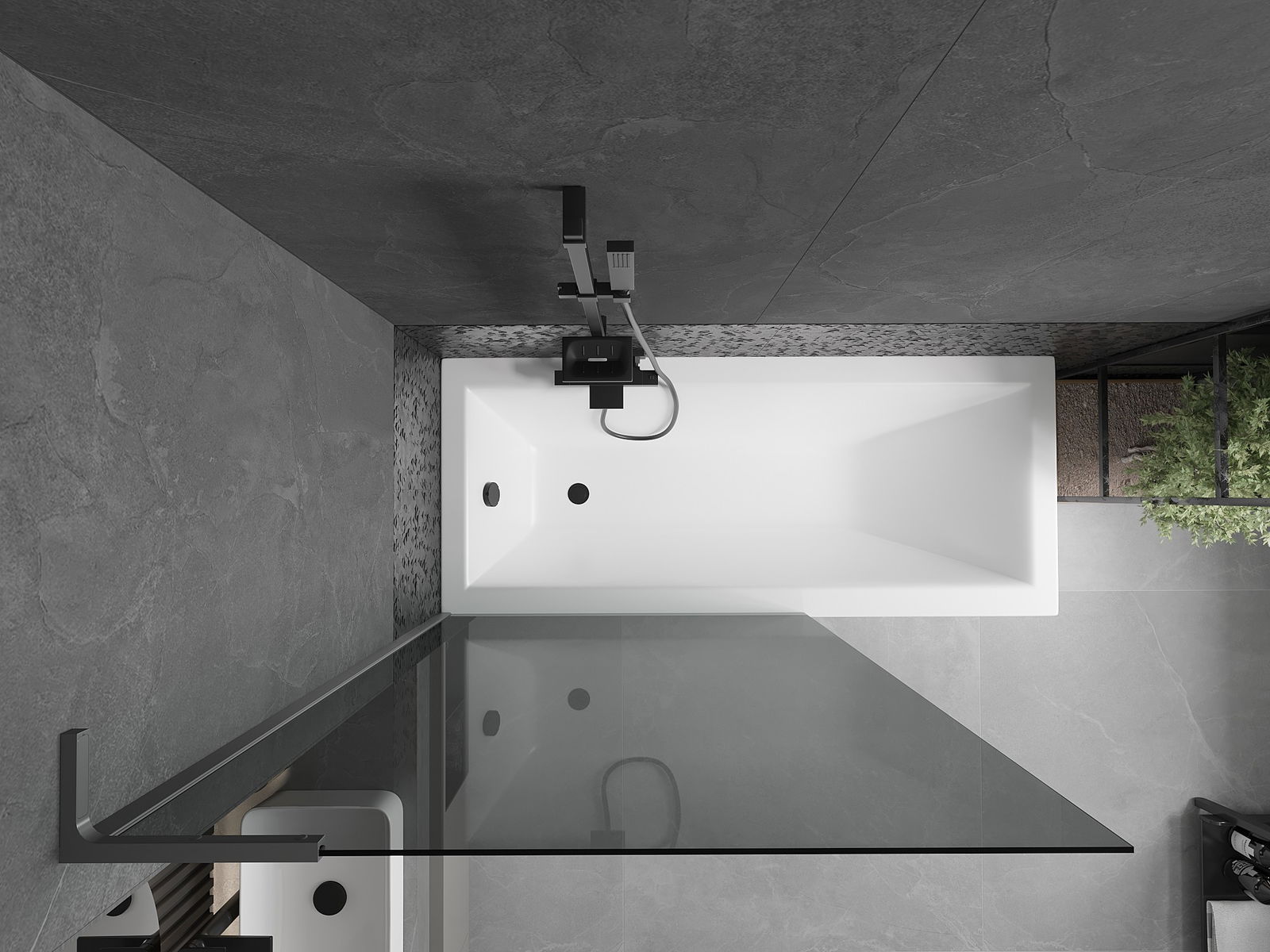 Effektiver Schutz gegen Wasser beim Baden. Der Bildschirm hat Dichtungen, die sich perfekt an das Glas des Glass und an der Badewanne der Badewanne anpassen. Eine funktionale Lösung, um Sicherheit und einfache Wartung zu gewährleisten.