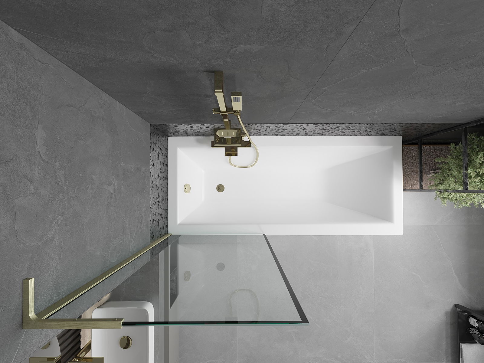 Mexen Next L Badewannenabtrennung 1-flügelig 70 x 150 cm, schwarzer Rahmen, gebürstet gold - 895-070-000-03-70-55