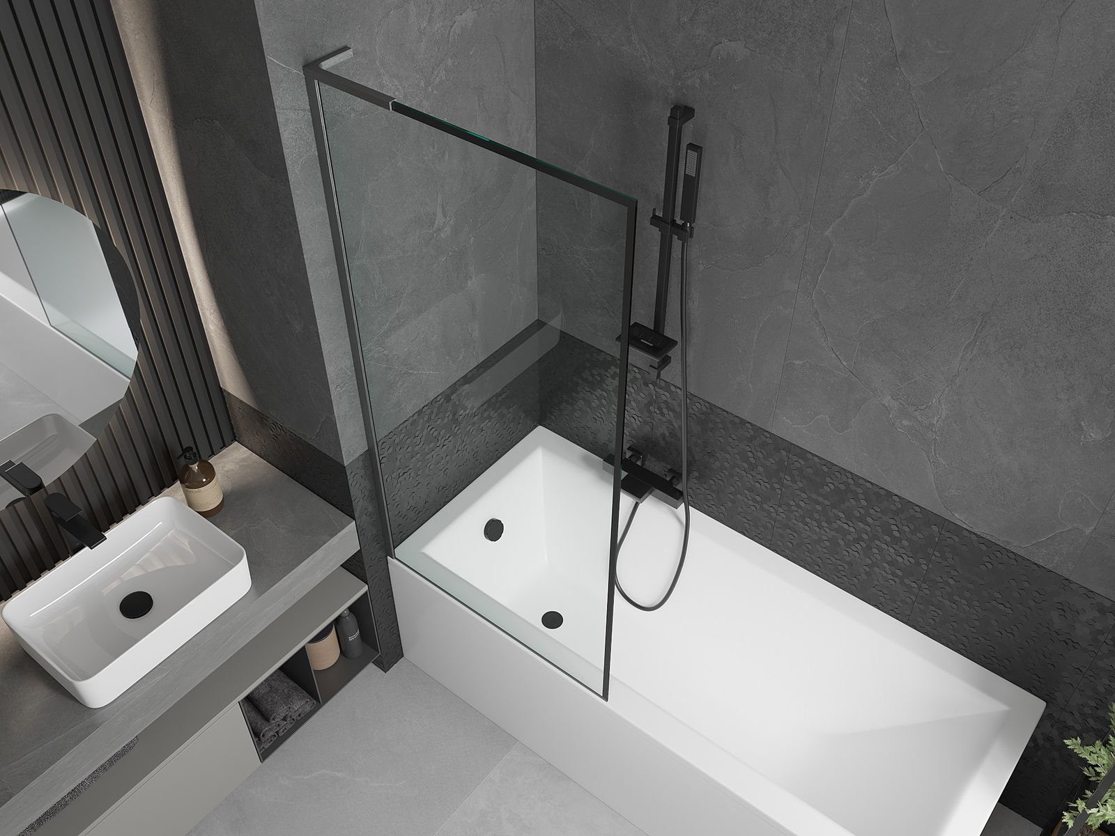 Effektiver Schutz gegen Wasser beim Baden. Der Bildschirm hat Dichtungen, die sich perfekt an das Glas des Glass und an der Badewanne der Badewanne anpassen. Eine funktionale Lösung, um Sicherheit und einfache Wartung zu gewährleisten.
