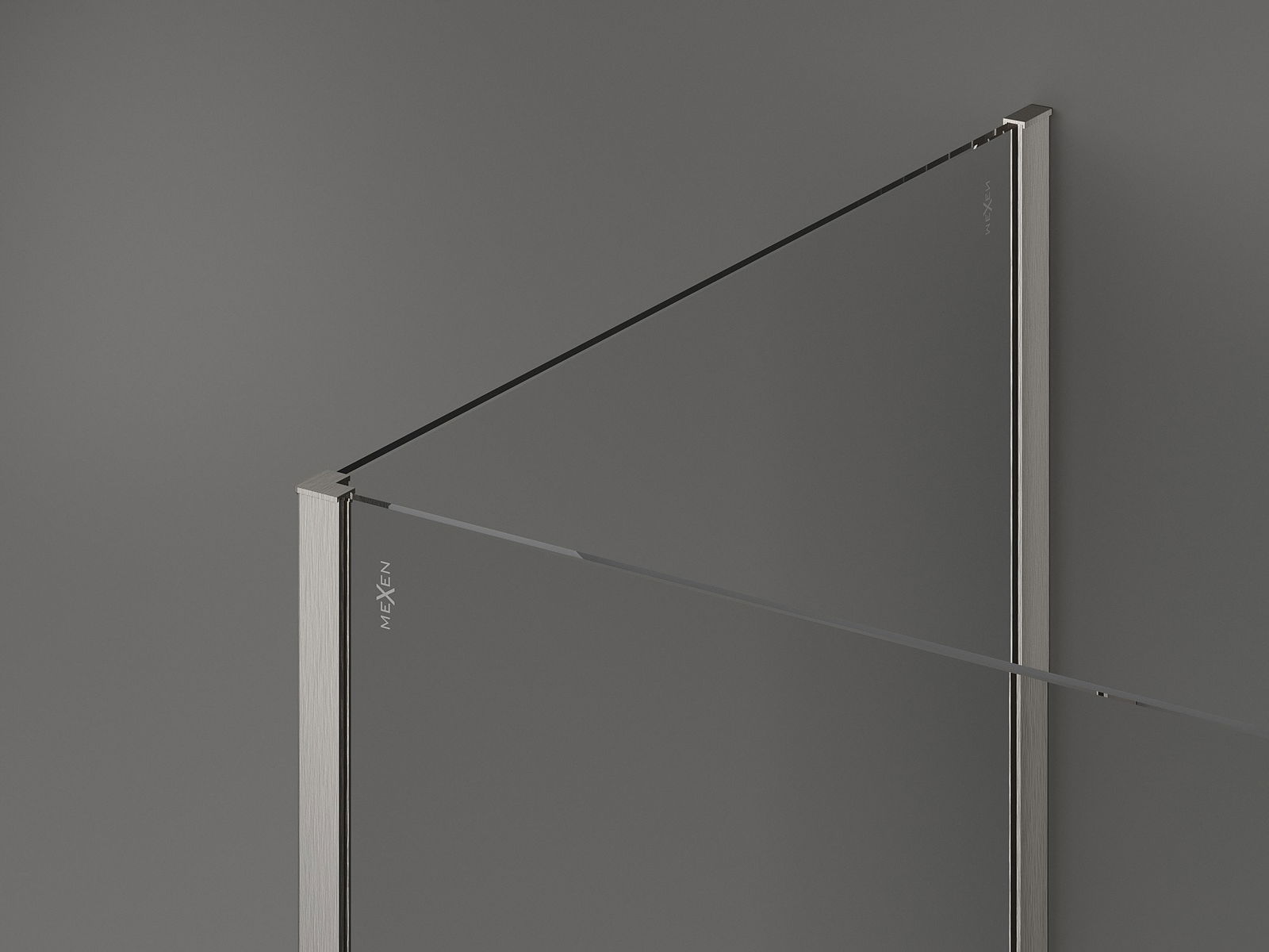 Mexen Kioto Duschwand Walk-in 130 x 90 x 40 cm, schwarzer Rahmen, gebürsteter Nickel - 800-130-090-221-97-70-040