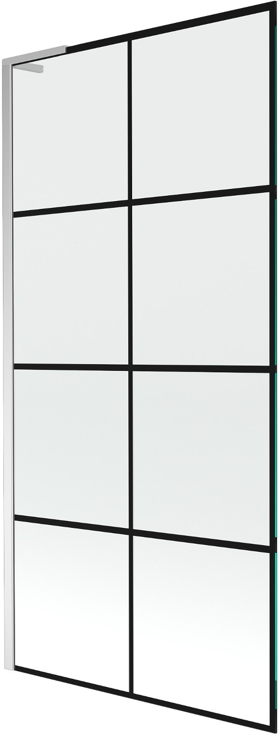 Mexen Next L Badewannenabtrennung 1-flügelig 90 x 150 cm, schwarzes Muster, Chrom - 895-090-000-03-77-01