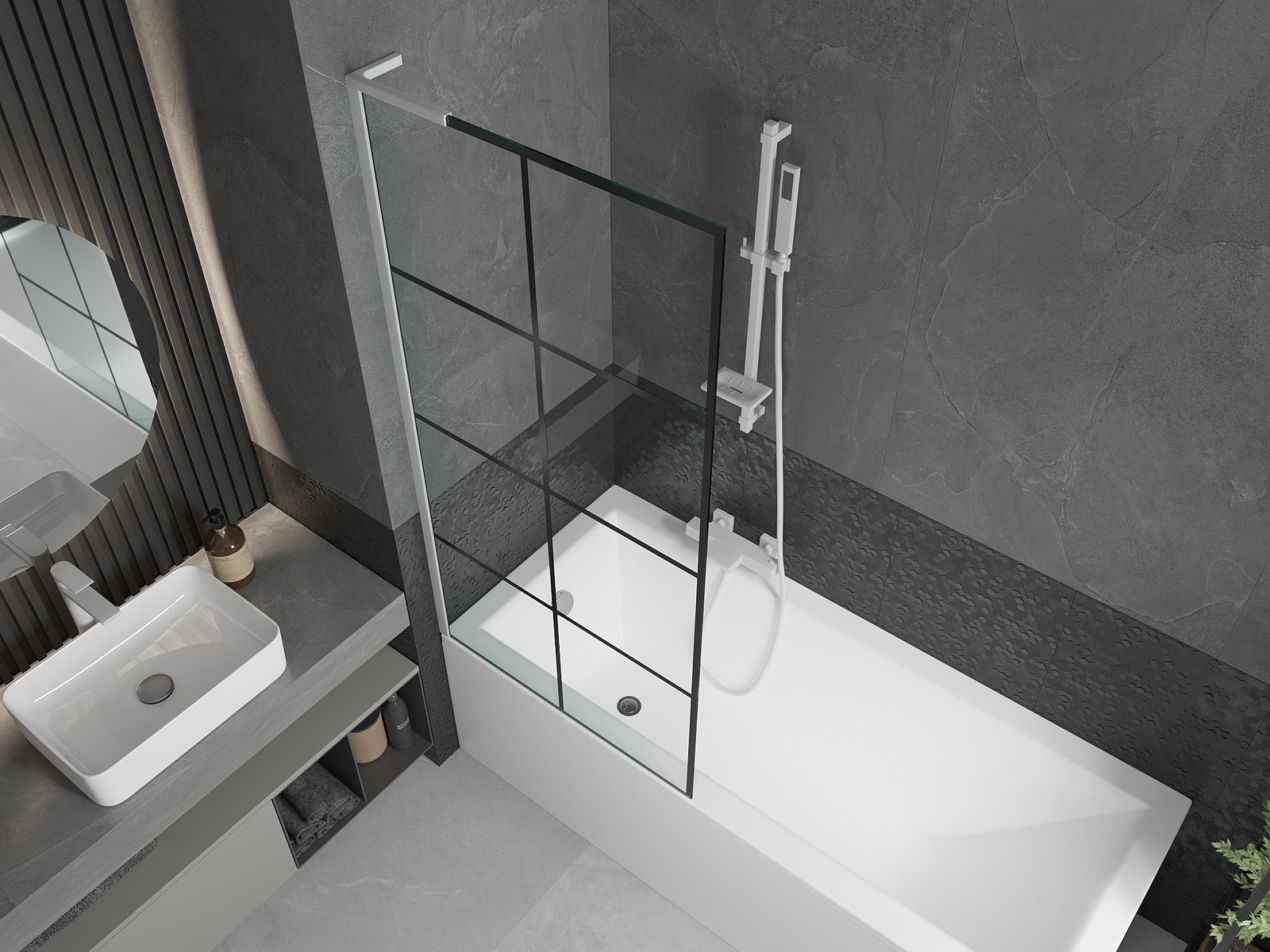 Mexen Next L Badewannenfaltwand 1-flügelig 80 x 150 cm, schwarzes Muster, weiß - 895-080-000-03-77-20