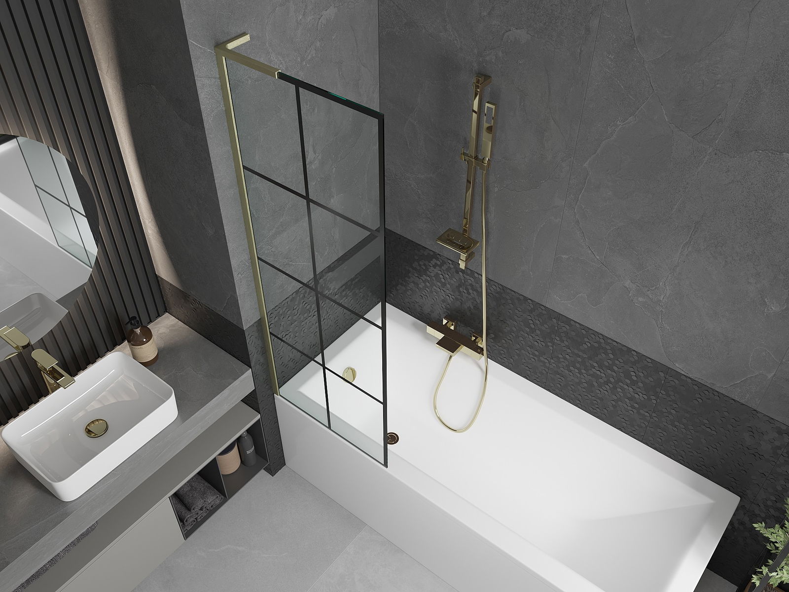 Mexen Next L Badewannenfaltwand 1-flügelig 60 x 150 cm, schwarzes Gitter, gebürstet gold - 895-060-000-03-77-55