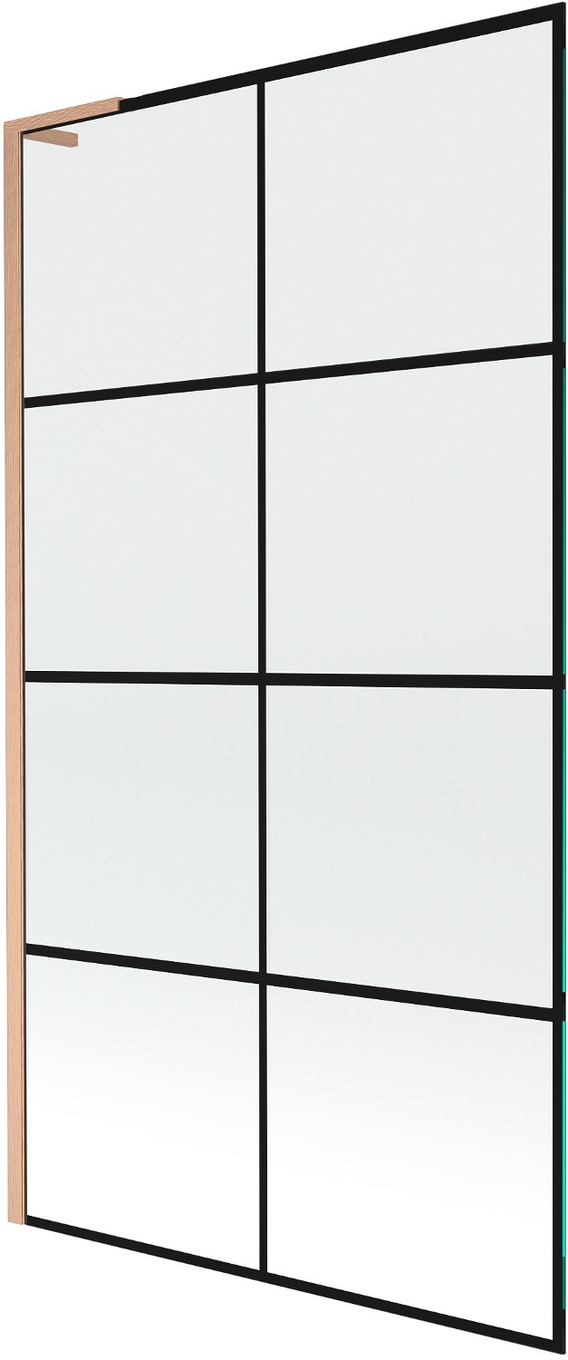 Mexen Next L Badewannenfaltwand 1-flügelig 100 x 150 cm, schwarzes Muster, gebürstetes Kupfer - 895-100-000-03-77-65
