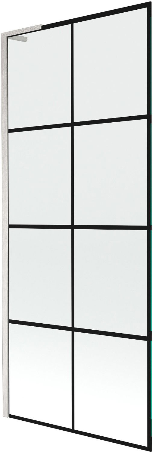 Mexen Next L Badewannenabtrennung 1-flügelig 80 x 150 cm, schwarzes Muster, gebürsteter Nickel - 895-080-000-03-77-97