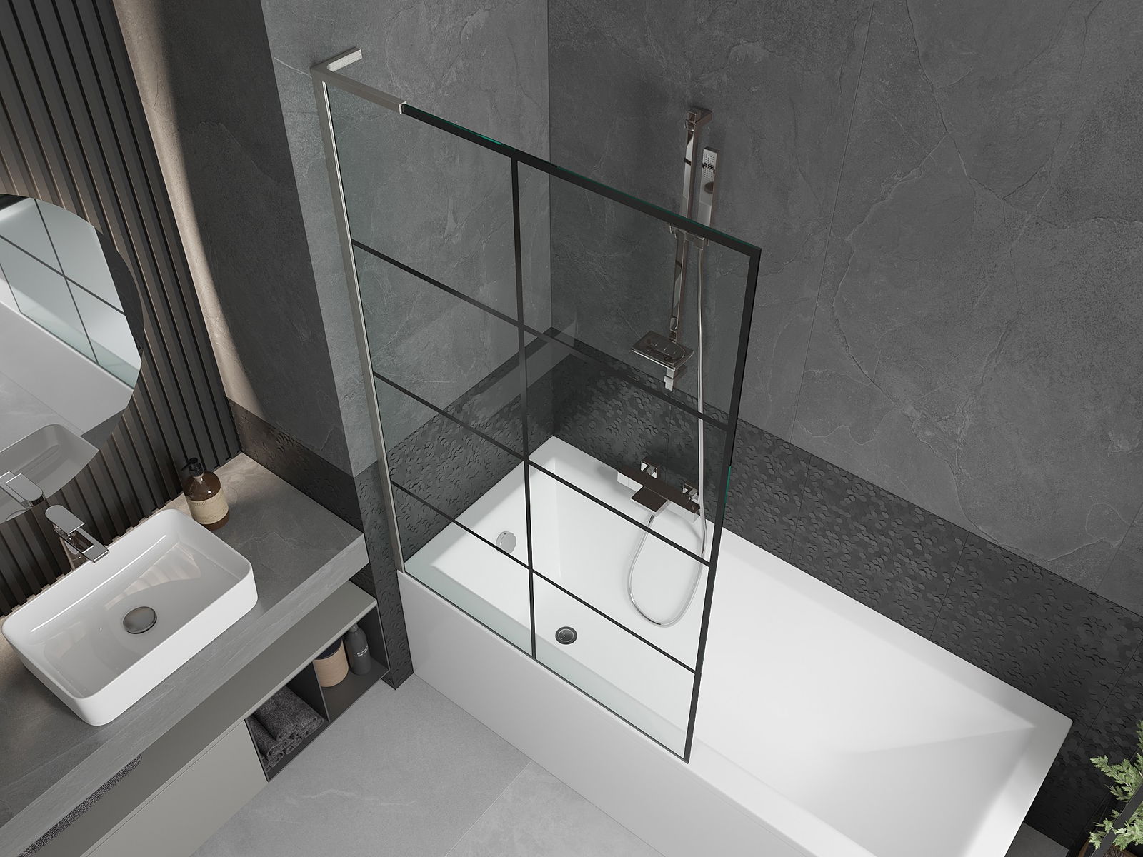 Mexen Next L Badewannenabtrennung 1-flügelig 100 x 150 cm, schwarzes Muster, gebürstetes Nickel - 895-100-000-03-77-97