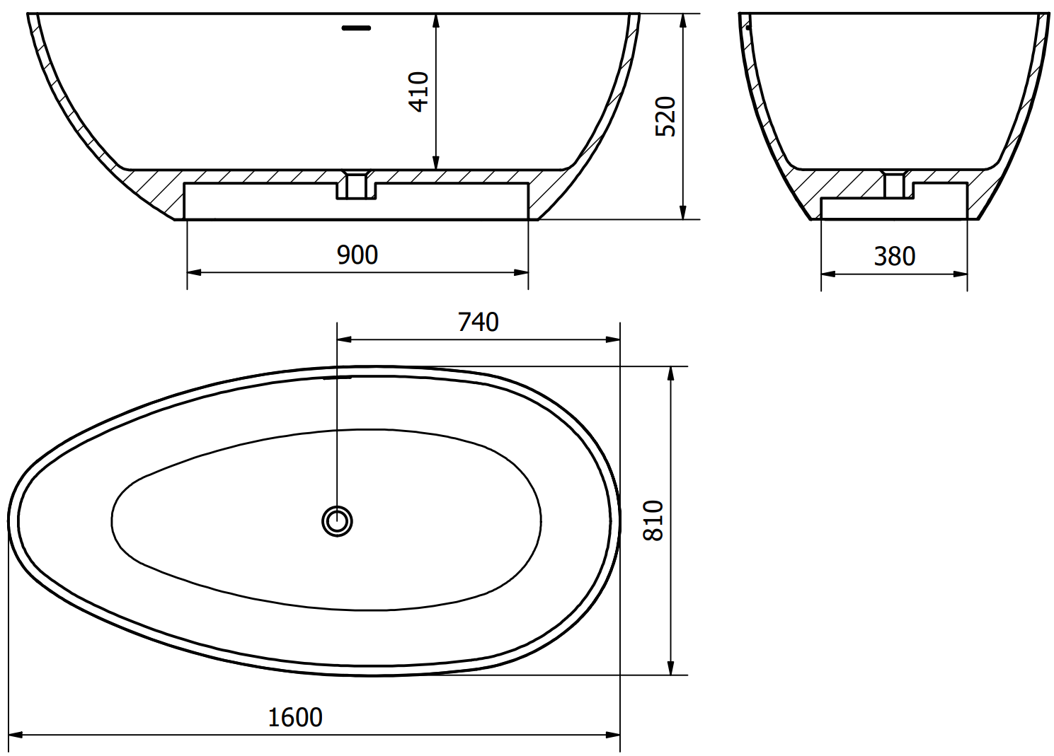 Mexen Imola freistehende Badewanne aus Konglomerat 160 x 81 cm, weiß matt - 57281608000