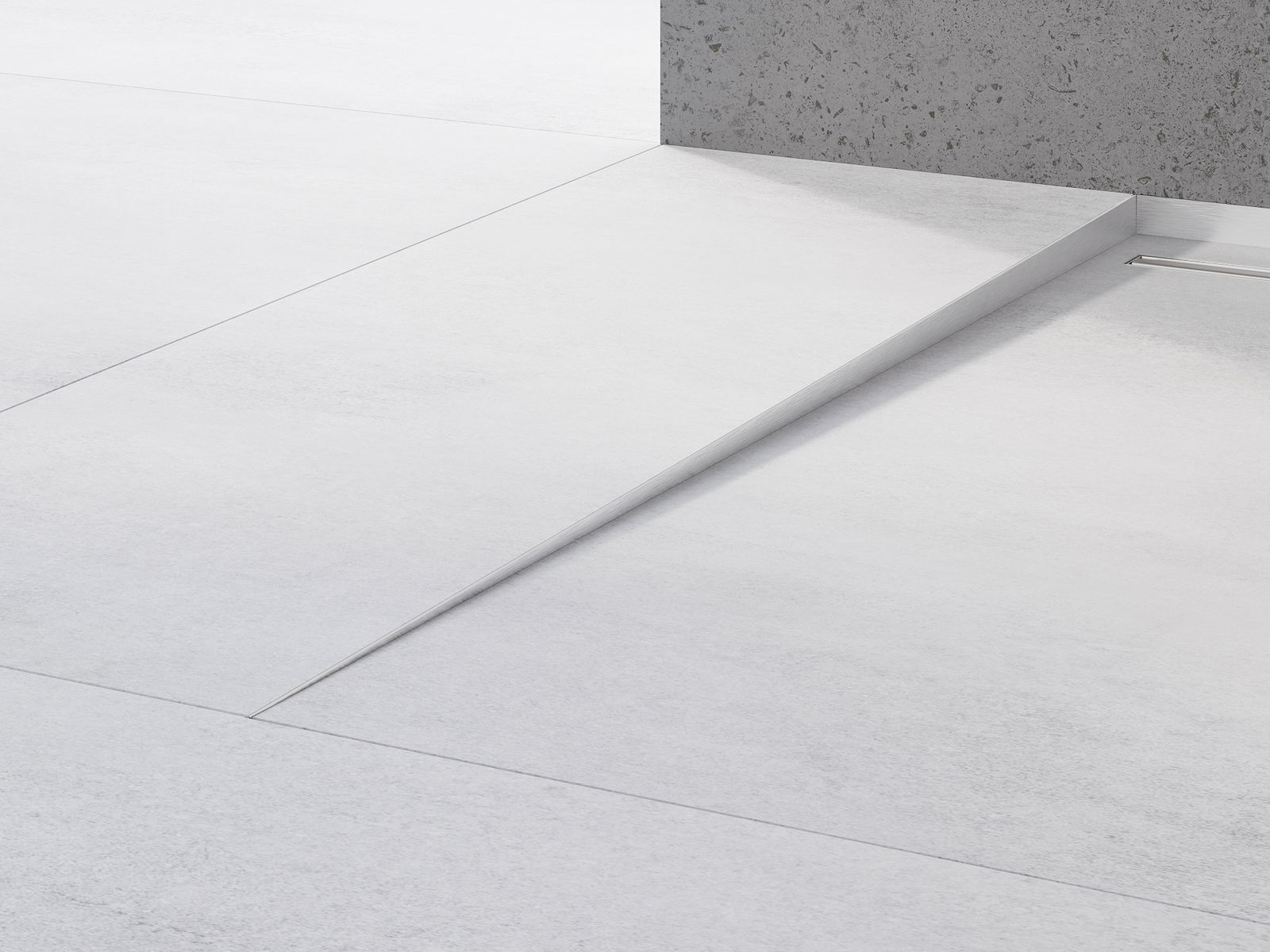 Die Seitenkante der Leiste erzwingt einseitiges Gefälle zum Linienabfluss ohne die Notwendigkeit eines sogenannten Kuverts