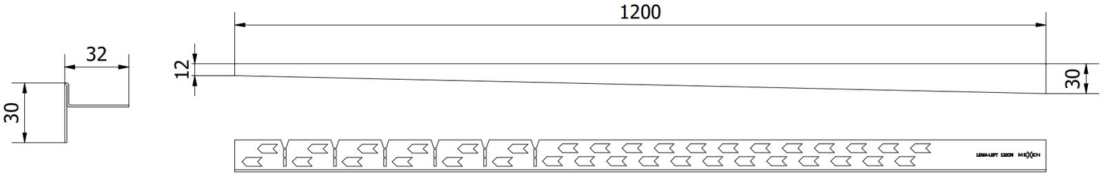 Die Seitenkante der Leiste erzwingt einseitiges Gefälle zum Linienabfluss ohne die Notwendigkeit, eine sogenannte Kuvertierung vorzunehmen