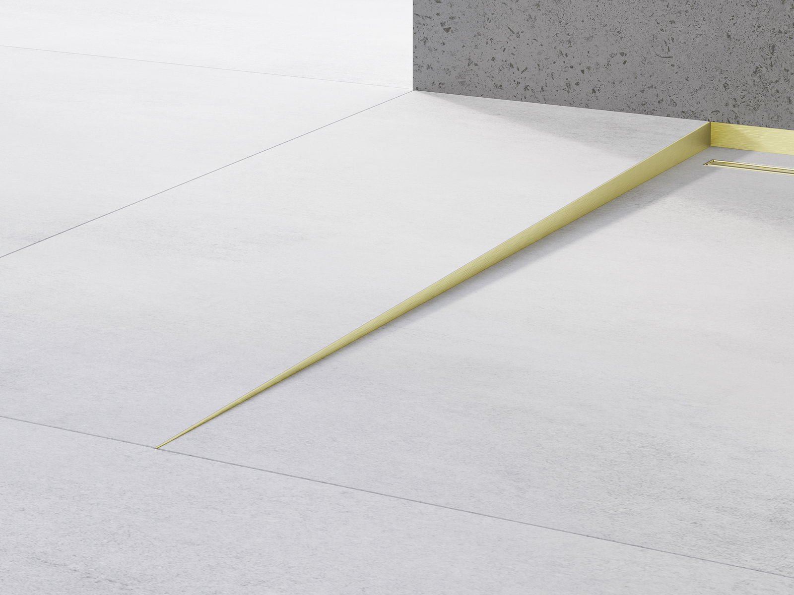 Die Verwendung einer Abflussleiste eliminiert die Notwendigkeit, sogenannte "Umschlagfliesen" herzustellen, was den Installationsprozess des Linienablaufs erheblich vereinfacht. Diese Lösung vermeidet zusätzliche, zeitaufwendige Arbeiten, die normalerweise zum Erreichen eines ausreichenden Gefälles im Boden dienen würden.