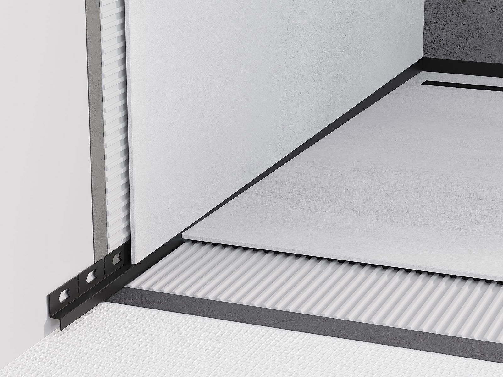 Die Seitenkante der Leiste erzwingt einen einseitigen Gefälle zum Linienablauf ohne die Notwendigkeit, ein sogenanntes Kuvert zu erstellen