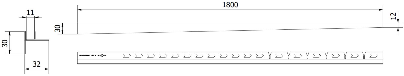 Die seitliche Kante der Leiste erzwingt ein einseitiges Gefälle zum Linienablauf ohne die Notwendigkeit, einen sogenannten Umschlag zu erstellen