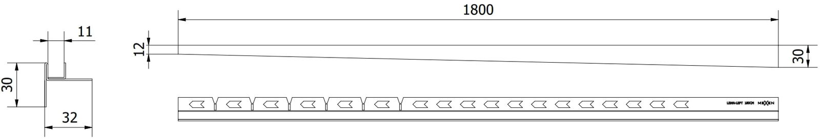Die seitliche Kante der Leiste erzwingt ein einseitiges Gefälle zum Linienablauf, ohne dass ein sogenannter Umschlag erforderlich ist