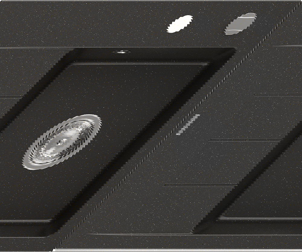 Die Spüle besteht aus hochwertigem Granit. Es ist eine elegante und vor allem praktische Ergänzung zu jeder Küche, unabhängig von ihrem Stil. Hohe Qualität und Granitdauer sorgen für eine langjährige Nutzung.