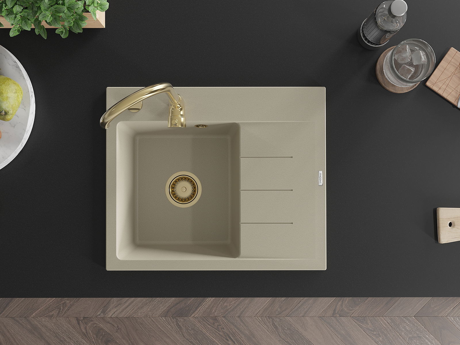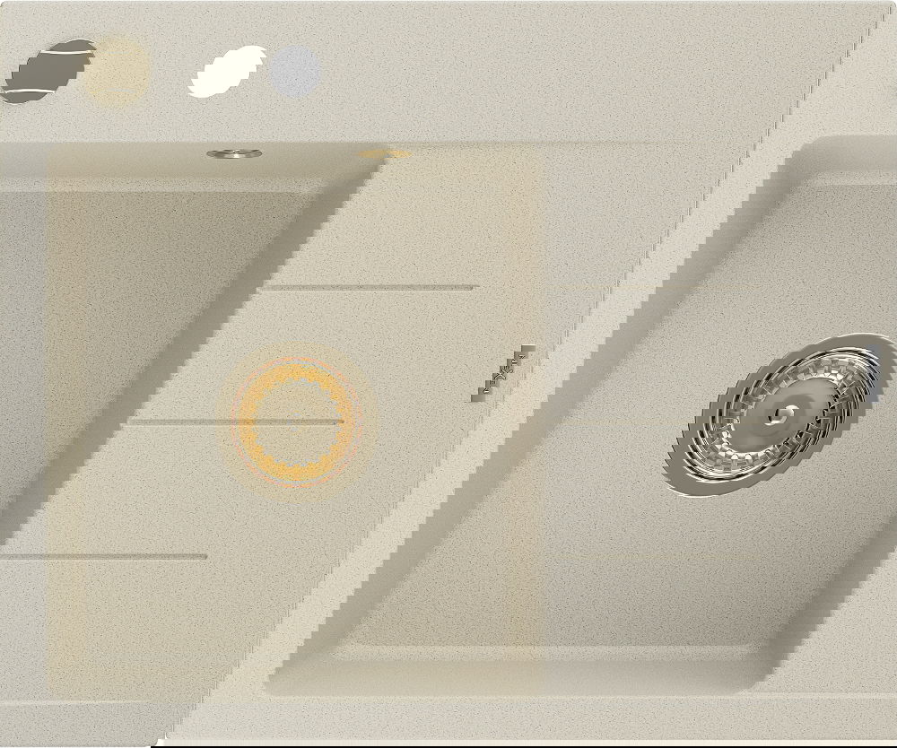 Die Spüle besteht aus hochwertigem Granit. Es ist eine elegante und vor allem praktische Ergänzung zu jeder Küche, unabhängig von ihrem Stil. Hohe Qualität und Granitdauer sorgen für eine langjährige Nutzung.